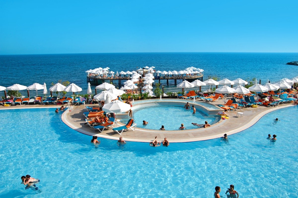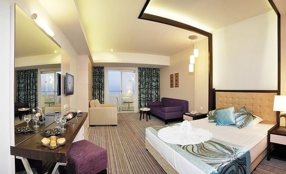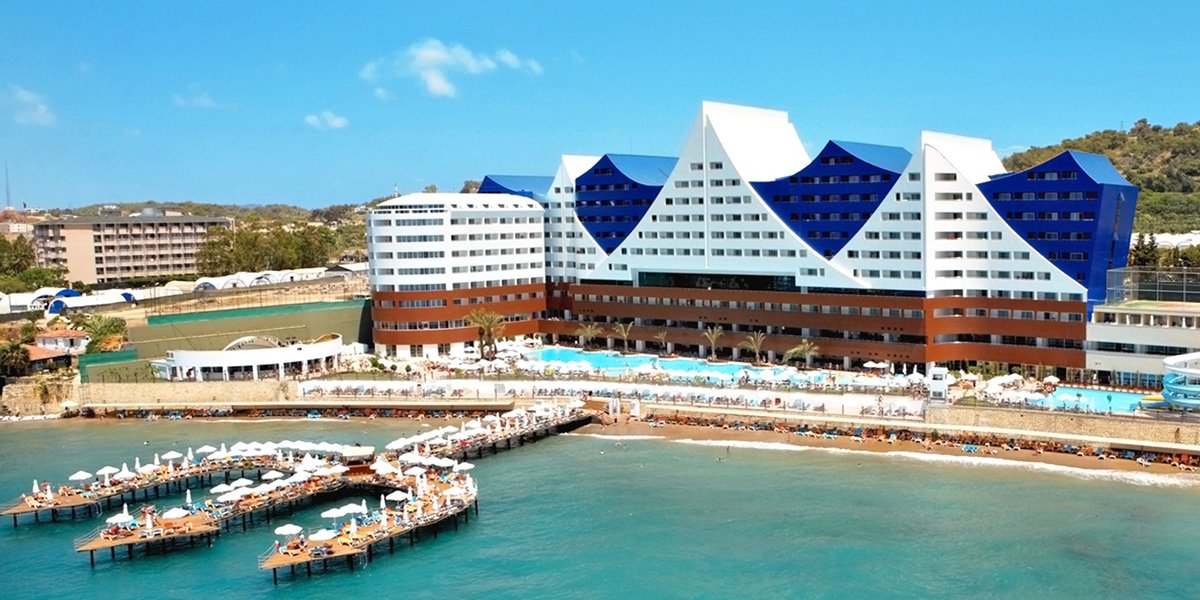 pięciogwiazdkowy, zbudowany w 2009 r., regularnie odnawiany, 555 pokoi, 1 budynek, 6 pięter, 5 wind, eleganckie lobby, całodobowa recepcja; restauracja główna – dania w formie bufetu, kuchnia międzynarodowa, 4 restauracje à la carte: kuchnia włoska, kuchnia turecka, kuchnia francuska, kuchnia azjatycka, w restauracjach dostępne foteliki dla dzieci; 5 barów: w lobby, przy basenie, Irish Pub, bar w dyskotece, snack bar, cukiernia; minimarket, sklep z pamiątkami, galanterią skórzaną i tekstyliami; centrum konferencyjne dla 980 osób, taras z widokiem na morze; za opłatą: room-service, internet bezprzewodowy (ok. 4 EUR/dzień), fryzjer, fotograf, lekarz na wezwanie, opiekunka do dziecka; akceptowane karty kredytowe: Visa, MasterCard.