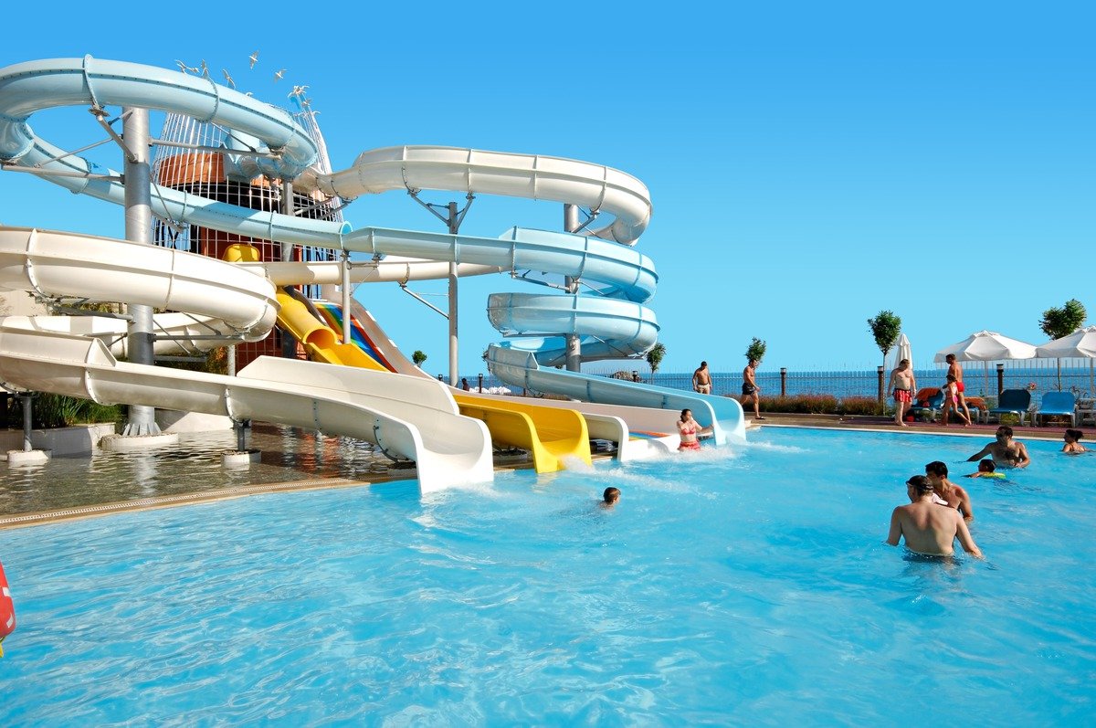 basen: słodka woda, ok. 2200 m², gł. 1,6 m, basen dla dzieci: ok. 150 m², gł. 0,5, basen z 4 zjeżdżalniami, ok. 400 m², basen, słodka woda, ok. 160 m², gł. 1,6 m, przy basenach bezpłatne parasole, leżaki i ręczniki; kort tenisowy z oświetleniem i wypożyczalnią sprzętu, centrum fitness (wstęp powyżej 16. roku życia), tenis stołowy, siatkówka; plac i pokój zabaw dla dzieci, miniklub (4-12 lat): minidisco, minikino, gry i zabawy, bufet dla dzieci; dyskoteka, amfiteatr, animacje dla dorosłych i dzieci; centrum spa (8.00-20.00): bezpłatnie: kryty basen, słodka woda, ok. 500 m², gł. 1,6 m, wstęp do łaźni tureckiej, sauna, płatne: masaże i zabiegi pielęgnacyjne.