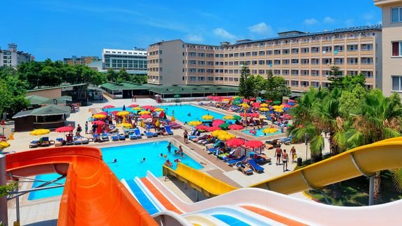 Mnóstwo słońca i jeszcze więcej zabawy! Wakacyjna, swobodna atmosfera i bogaty program rozrywkowy to atuty hotelu, położonego blisko ładnej plaży z barem i bezpłatnym serwisem. Spodoba się tutaj również najmłodszym wczasowiczom – czekają na nich zajęcia w miniklubie, plac zabaw i radosne animacje. Zależnie od tego, na co masz akurat ochotę, możesz szaleć z dzieciakami na wodnych zjeżdżalniach, wypoczywać z książką przy basenie relaksacyjnym lub zaszyć się w centrum spa i poddać odprężającym zabiegom i masażom. A dla wszystkich smakoszy prawdziwą gratką będzie miejscowa kuchnia i bogata formuła all inclusive.