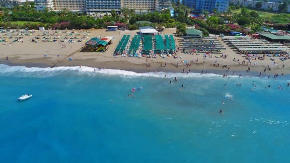 hotelowa, piaszczysto-żwirowa, łagodne zejście do morza, ok. 500 metrów od hotelu, bezpłatne parasole, leżaki, materace i ręczniki (wymagany depozyt); bar objęty all inclusive.