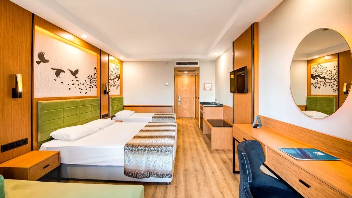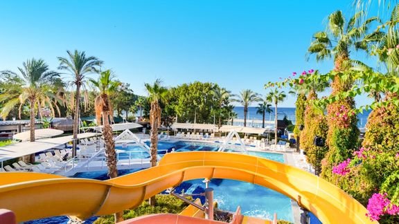 Położony w malowniczej lokalizacji, pomiędzy górami Taurus a Morzem Śródziemnym, oferuje nie tylko wyjątkowe widoki i bliskość pięknej plaży w zatoce. Odnowiony na początku 2023 roku, składa się z kilku budynków otoczonych zielenią, a życie w hotelu toczy się wokół basenów – lubisz zjeżdżać na zjeżdżalniach, leniuchować na leżaku, czy odpoczywać aktywnie? Znajdź miejsce dla siebie! Dużo się tutaj dzieje i jest w czym wybierać – szeroka oferta sportowa, mnóstwo atrakcji dla dzieci i animacje dla całej rodziny, a dla wielbicieli relaksu centrum spa z bogatą ofertą zabiegów. Świetnie oceniany również za wyżywienie, oferuje 4 restauracje i aż 5 barów! W okolicy mnóstwo miejsc wartych zobaczenia – koniecznie zaplanuj zwiedzanie antycznego Side i Alanyi.
