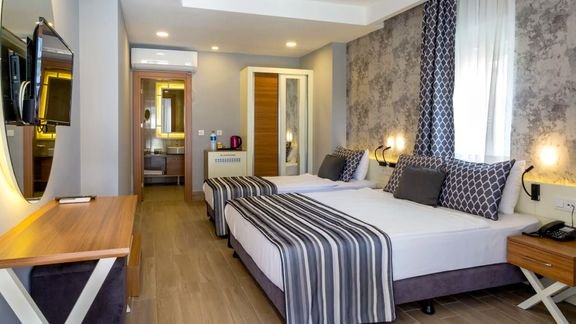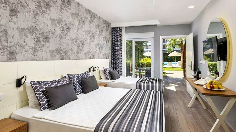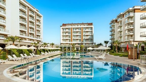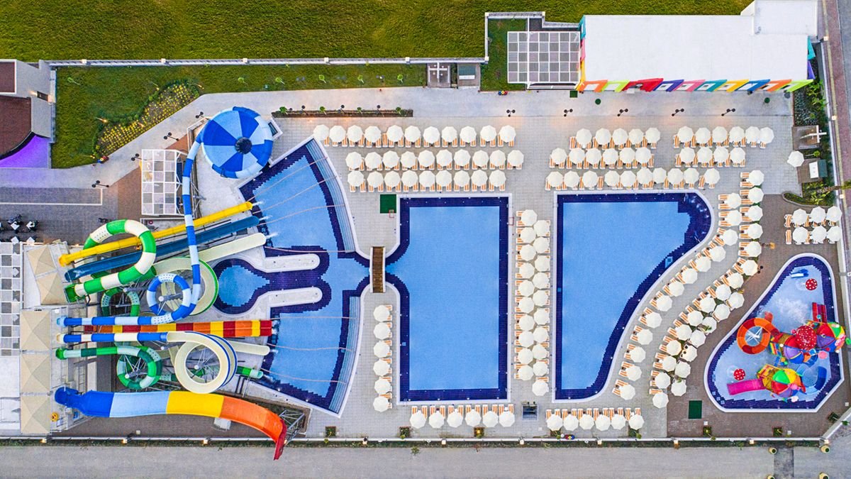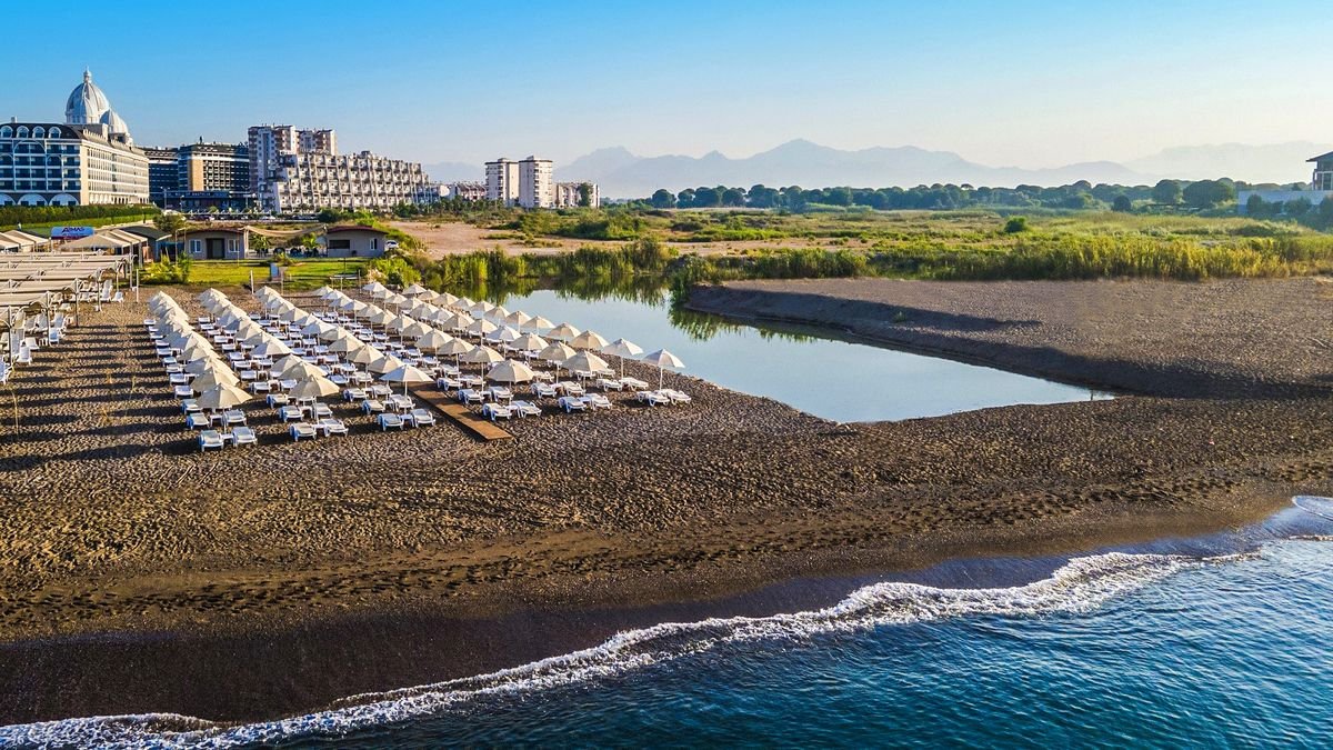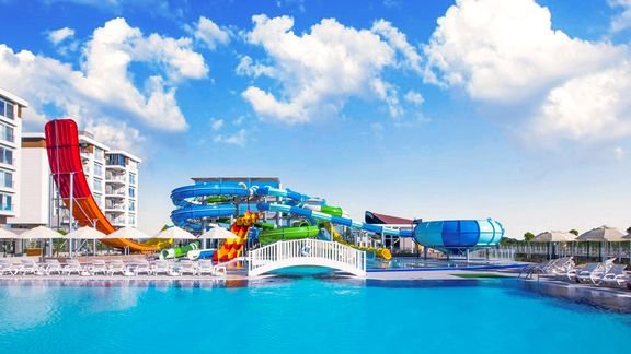Jeśli marzysz o wakacjach w tureckim słońcu, gdzie rodzinna zabawa idzie w parze z wygodą all inclusive, to tu szybko złapiesz swój rytm. Do dyspozycji masz kilka basenów oraz aquapark ze zjeżdżalniami i strefą dla dzieci, więc każdy znajdzie coś dla siebie – od relaksu po solidną dawkę emocji! Hotel ma własną, wydzieloną część na piaszczystej plaży, na którą dojedziesz bezpłatnym busem hotelowym. Gdy najdzie Cię ochota na ruch, skorzystaj z bogatego zaplecza sportowo-rekreacyjnego, a potem wpadnij do jednej z restauracji na coś pysznego i zakończ dzień w barze przy ulubionym, zimnym napoju. To taki resort, w którym plan jest prosty: słońce, woda, dobre jedzenie i totalny reset.