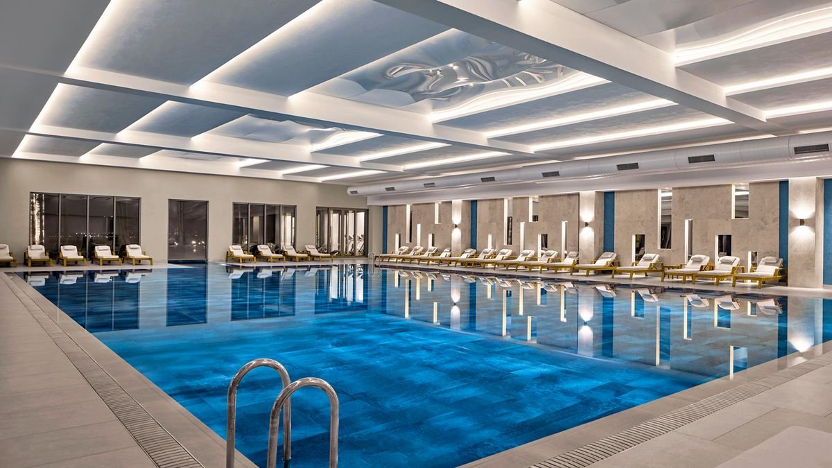 basen kryty połączony z basenem zewnętrznym, ok. 451 m²brodzik, ok. 6 m²2 baseny cold plunge3 sauny, w tym fińska