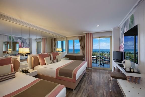 Zbudowany z prawdziwym rozmachem i przepychem, położony w dzielnicy Lara-Kundu, bezpośrednio przy szerokiej i piaszczystej plaży. Ciekawa architektura, gustownie urządzone pokoje, 5 basenów, w tym 1 ze zjeżdżalniami i 1 kryty oraz bogata oferta all inclusive plus 24h sprawiają, że hotel cieszy się bardzo dobrymi opiniami klientów. Po dniu pełnym wakacyjnych atrakcji wypocznij w przestronnych i komfortowych pokojach lub zrelaksuj się na leżaku.