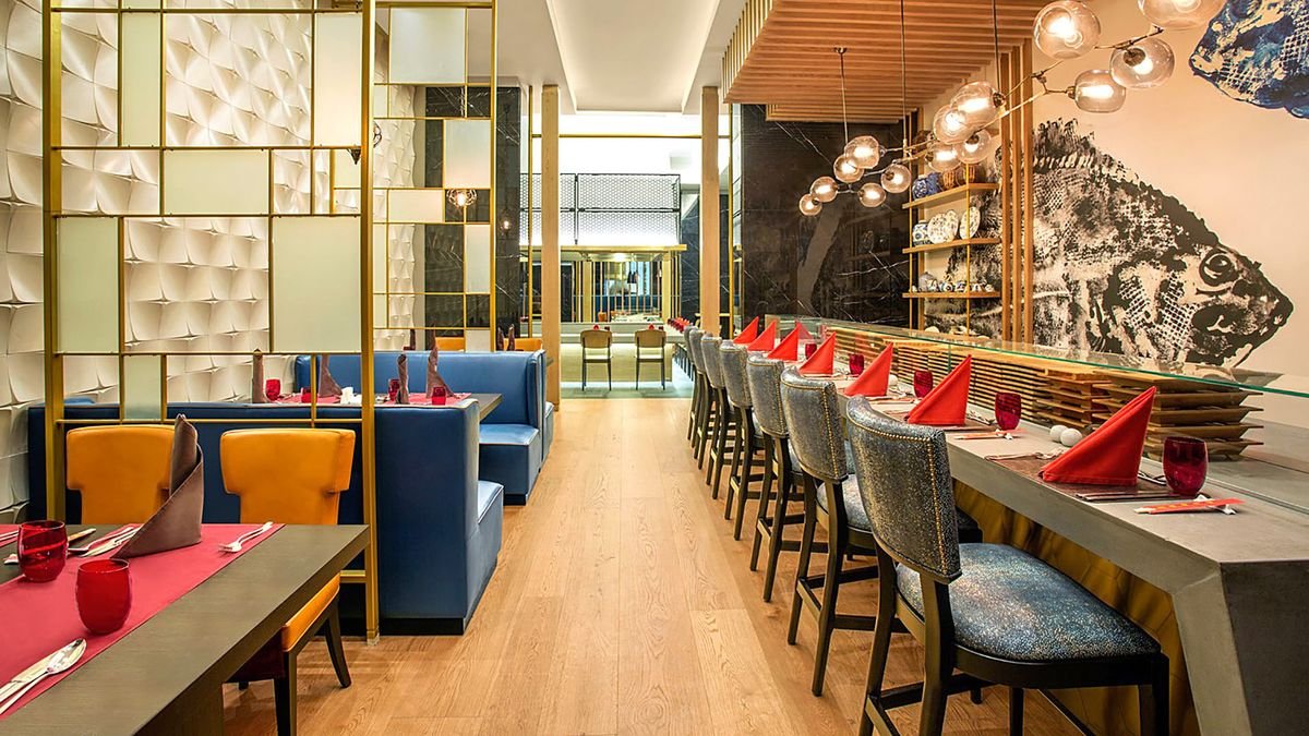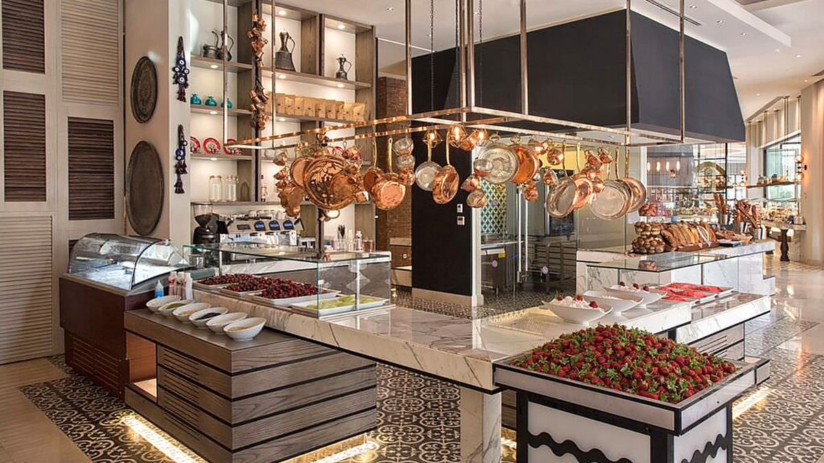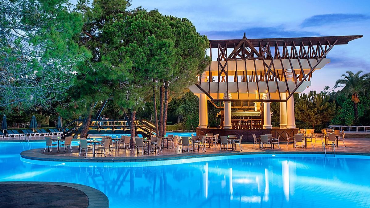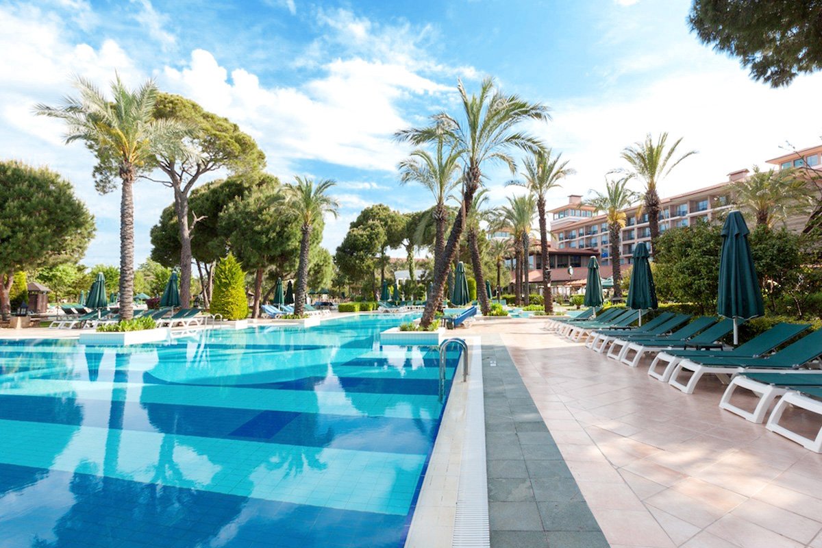 pięciogwiazdkowy, elegancki i nowoczesny, zbudowany w 2003 r., odnowiony w 2015 r. (pokoje), budynek główny i wille, do 5 pięter, windy, przestronne i eleganckie lobby, całodobowa recepcja, restauracja główna: Sofra – dania w formie bufetu, kuchnia międzynarodowa, dostępne foteliki dla dzieci, 6 restauracji á la carte: Wabi Teppenyaki/Sushi – kuchnia chińska, sushi, dostępne foteliki dla dzieci, Casa Mexicana – kuchnia meksykańska, dostępne foteliki dla dzieci, Fes Turkish – kuchnia turecka, Green Fish/Cavalli – kuchnia włoska, owoce morza, 6 barów, w tym na plaży; sklepy, kioski, butiki; centrum konferencyjne; bezpłatny internet bezprzewodowy; za opłatą: fryzjer; akceptowane karty kredytowe: Visa, MasterCard.