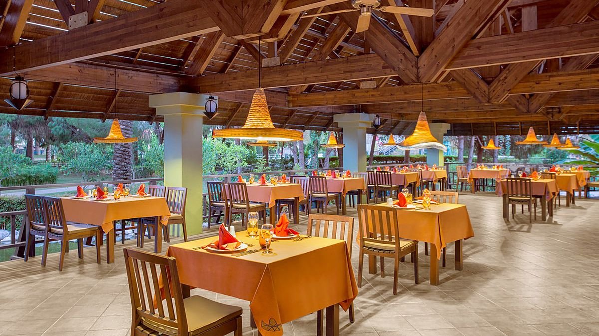 śniadanie, obiad i kolacja w formie bufetu w restauracji Sofra; przekąski ciepłe i zimne (12.00-16.00) w barach; lokalne i wybrane importowane napoje bezalkoholowe i alkoholowe (24h) w wybranych barach.