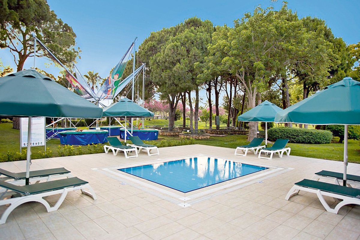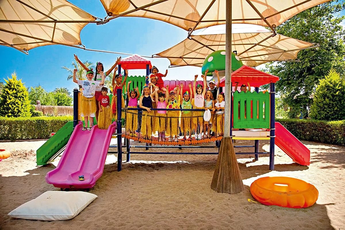 5 basenów, nieregularny kształt, słodka woda, gł. do 1,4 m, w tym 1 dla dzieci, basen kryty dla dzieci, prostokątny kształt, słodka woda, gł. do 1,4 m, duży aquapark dla dzieci i dorosłych, przy basenach bezpłatne parasole, leżaki, materace i ręczniki; 4 korty tenisowe, boccia, kręgle, siatkówka, koszykówka, piłka nożna, minigolf, aqua aerobik, gry w basenie, waterpolo; pokój i plac zabaw dla dzieci, miniklub (4-12 lat), animacje dla dorosłych i dla dzieci: gry i zabawy, pokazy wieczorne; centrum spa: bezpłatnie: sauna, łaźnia turecka; za opłatą: zabiegi, masaże.