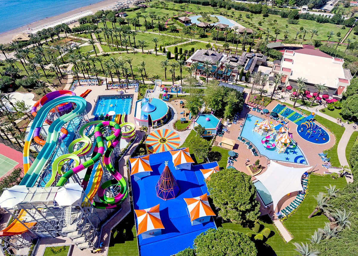 Ten hotel tętni życiem – tutaj spotykają się miłośnicy słońca i dobrej zabawy z całego świata! Goście mogą korzystać aż z 5 basenów, szaleć w aquaparku i rywalizować ze sobą w wielu dyscyplinach sportowych. Od waterpolo przez minigolf aż do siatkówki czy koszykówki – tutaj każdy znajdzie coś dla siebie. Po aktywnie spędzonym dniu warto uzupełnić kalorie korzystając z urozmaiconej kuchni – do dyspozycji Gości jest aż 7 restauracji i 6 barów. Wnętrze hotelu jest urządzone luksusowo i ze smakiem, eleganckie pokoje są przestronne i funkcjonalne, każdy z dostępem do internetu. Całości dopełnia przyjazna i sympatyczna obsługa. Czego chcieć więcej? W 2019 r. hotel otrzymał ŻAGIEL ITAKI za najwyższą jakość świadczonych usług.