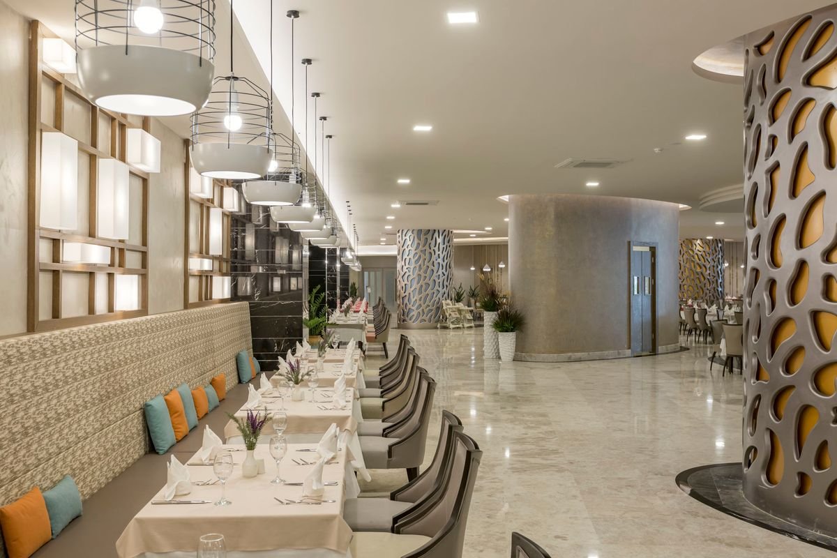 Zaprojektowany z rozmachem, luksusowy hotel sieci Stone Group, którego znakiem rozpoznawczym jest wielka gwiazda. Położony na powierzchni 70 tys. m2, w odległości spaceru od plaży z pomostem, zaprasza na niezapomniany urlop z dziećmi, w miejscu, które będzie dla nich prawdziwym, wakacyjnym rajem! W ciągu dnia czas można tu spędzić z profesjonalnym zespołem animatorów, na milusińskich czekają również ciekawe zajęcia w miniklubie. Do dyspozycji jest kilka basenów, aquapark, a nawet lunapark, w sezonie zimowym czynne są baseny kryte w spa – może się zakręcić w głowie! W hotelu aż 10 restauracji, kilka barów, cukiernia i kawiarnia, więc każdego dnia można spróbować innej kuchni i napić się pysznej kawy w innym miejscu! Mocną stroną są tutaj pokoje – wyjątkowo przestronne, komfortowe, świetnie wyposażone i... z widokiem na morze! Niedaleko stąd do lotniska, co gwarantuje krótki transfer do hotelu – szczególnie docenią to rodziny z dziećmi!
