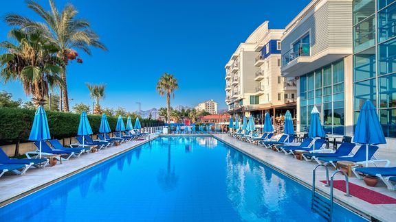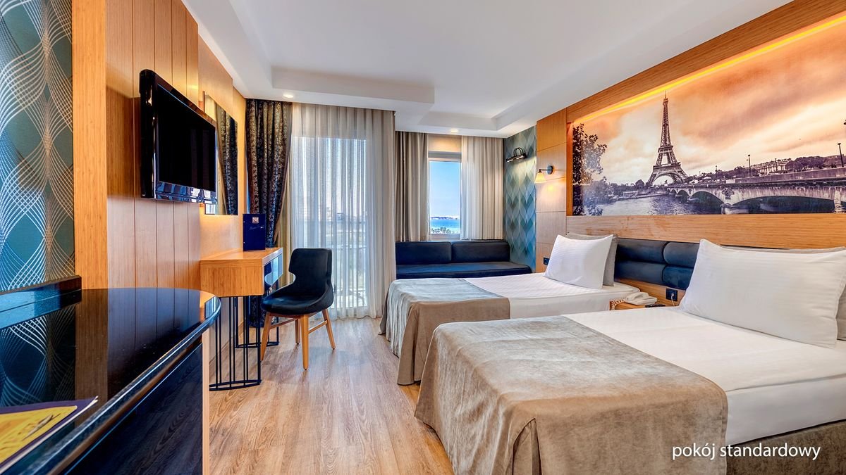 Doskonale położony, blisko plaży, w otoczeniu licznych sklepów i knajpek jest idealnym wyborem na niezapomniane, rodzinne wakacje. Dizajnerska architektura pełna bieli i naturalnego światła wprowadza w dobry nastrój, wygodne i świetnie wyposażone pokoje są idealną oazą za chwilę odpoczynku, a ilość atrakcji oferowanych przez hotel może przyprawić o zawrót głowy. Na Gości czeka aż 5 basenów, w tym 2 dla dzieci, siłownia, rzutki, tenis stołowy i liczne animacje, które są szczególnie chwalone przez stałych klientów. Miłośnicy lokalnych smaków nie będą zawiedzeni – czeka na nich nie lada uczta w 2 restauracjach serwujących kuchnię międzynarodową, turecką i ryby, a spragnieni relaksu mogą wybrać się do profesjonalnego centrum spa lub oddać się błogiemu lenistwu na plaży.