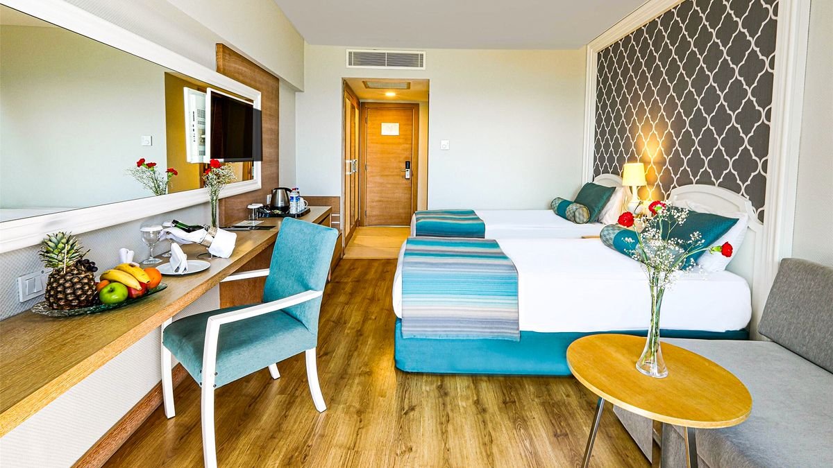 Tutaj Twoje wakacje staną się naprawdę wyjątkowe! Tuż obok rozciąga się piaszczysta plaża, na której wypoczniesz w promieniach słońca, a na miejscu czekać na Ciebie będzie aż 6 basenów, w tym ze zjeżdżalniami. W hotelu ciągle coś się dzieje – ciekawy program animacyjny, minikluby dla dzieci oraz aktywności sportowe dla dorosłych – od ćwiczeń na siłowni, po grę w tenisa lub koszykówkę sprawiają, że każdy dzień wypełniony jest ulubionymi urlopowymi atrakcjami. Pokoje są przestronne i doskonale wyposażone, a te z widokiem na morze zachwycają scenerią o poranku i przy zachodzie słońca. W hotelowych restauracjach skosztujesz dań inspirowanych różnorodnymi kuchniami świata, a wieczory możesz spędzać w klimatycznych barach lub przy muzyce na żywo. To idealny wybór na beztroskie wakacje pełne słońca, relaksu i niezapomnianych chwil.