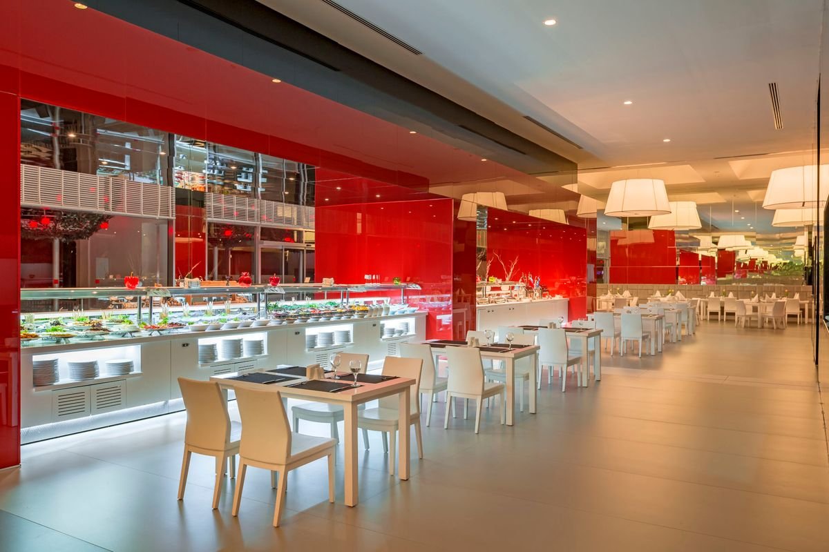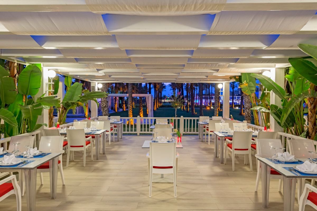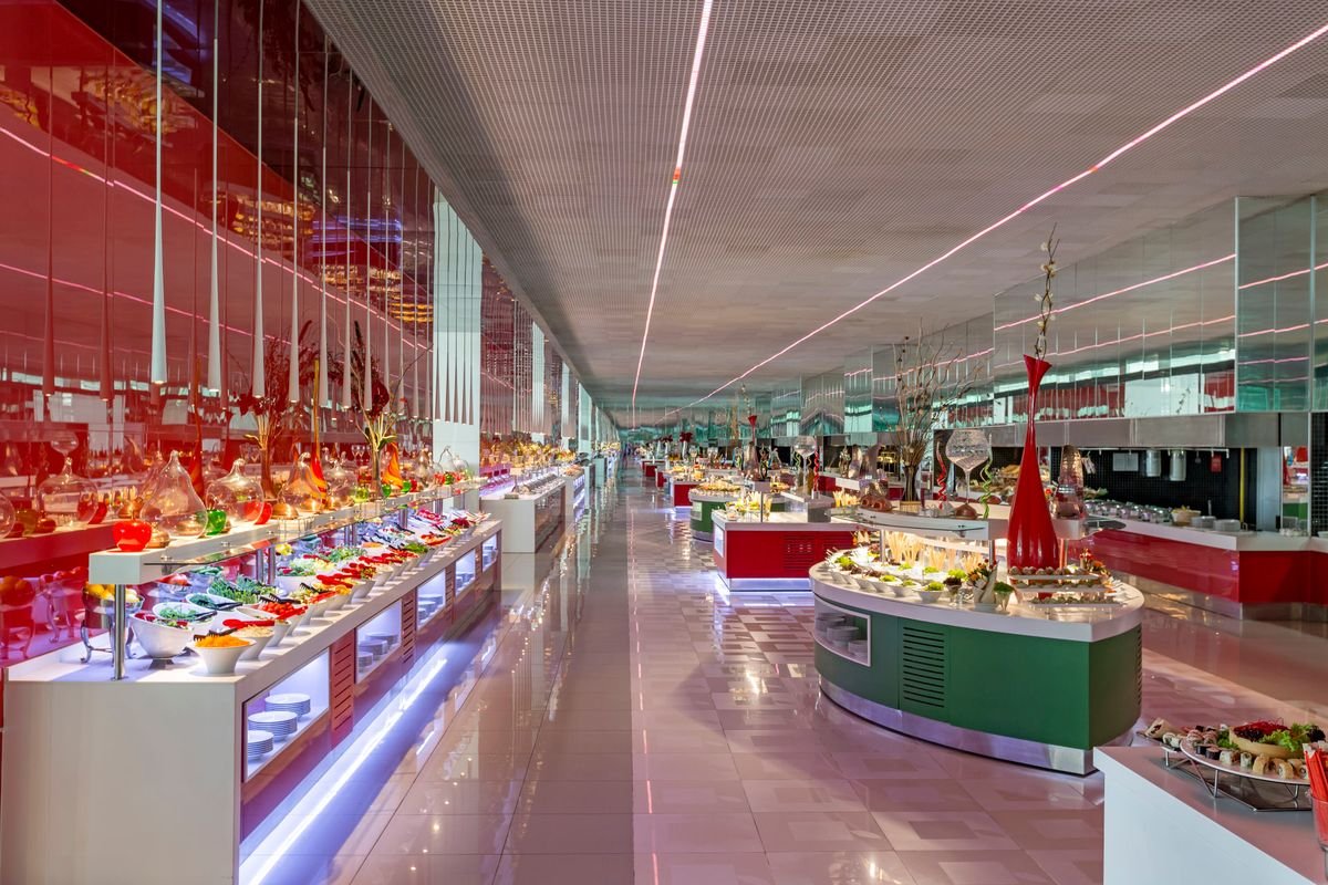 śniadanie (7.00-10.00), obiad (13.00-14.30), kolacja (19.00-21.30) w formie bufetu, w restauracji głównej; przekąski w wyznaczonym barze (12.30-15.30); ciasto w cukierni (16.00-19.00); nocne przekąski w wyznaczonym miejscu (23.30-03.00); kawa, herbata, napoje bezalkoholowe i lokalne napoje alkoholowe w wyznaczonych barach (9.00-24.00); wymagane noszenie opasek all inclusive plus.