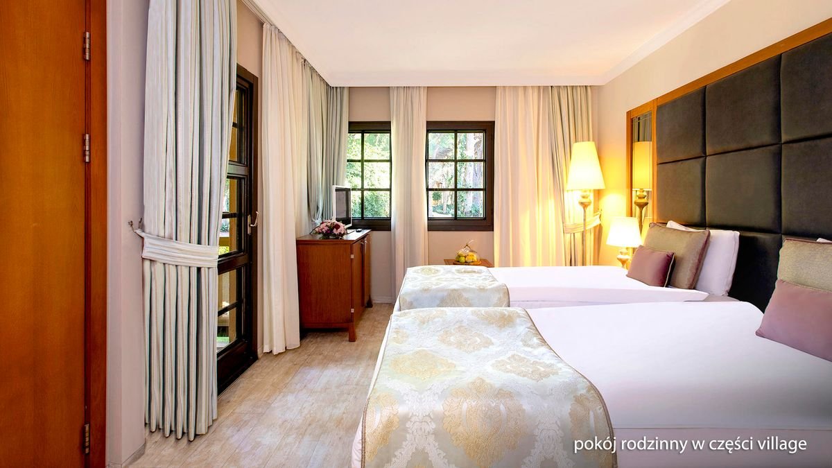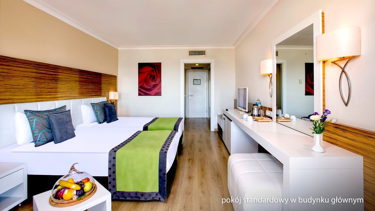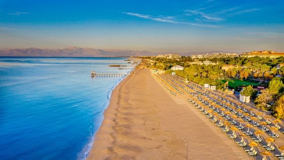 Położony na rozległym terenie, w zielonym, zadbanym ogrodzie, bezpośrednio przy długiej, piaszczystej plaży, oferuje pełen wachlarz atrakcji zarówno na aktywny wypoczynek, jak i błogie lenistwo w promieniach tureckiego słońca. Hotel zapewnia szereg zajęć dla amatorów sportów wodnych i nie tylko, jest również wymarzonym miejscem wypoczynku dla rodzin. Na szczególną uwagę zasługuje piękny kompleks basenowy z aquaparkiem oraz szeroki wybór restauracji serwujących całą gamę potraw z różnych zakątków świata. Na chwile relaksu po dniu pełnym wrażeń zaprasza hotelowe centrum spa, oferujące m.in. zabiegi pielęgnujące i masaże.