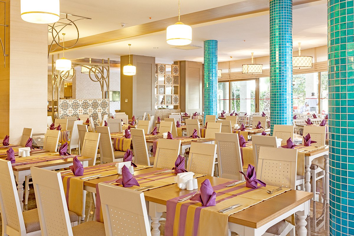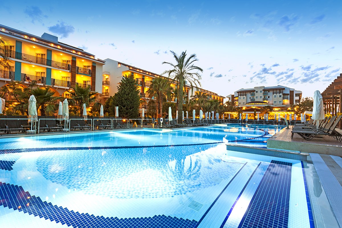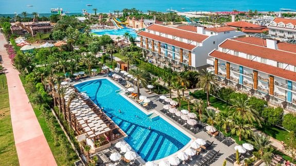 pięciogwiazdkowy, zbudowany w 2005 r., rozbudowany i odnowiony zimą 2014/2015; 475 pokoi, 6 budynków, do 5 pięter, 8 wind, eleganckie, przestronne lobby, całodobowa recepcja; 3 restauracje: restauracja główna – dania w formie bufetu, obsługa kelnerska, kuchnia międzynarodowa, dostępne foteliki i menu dla dzieci, dania wegetariańskie, możliwość zamówienia posiłków dostosowanych do diety, 2 restauracje á la carte z obsługą kelnerską: Flamingo – kuchnia włoska, Turquaz – kuchnia turecka, dostępne foteliki i menu dla dzieci, 8 barów: bar całodobowy w lobby, bar Piano w lobby, 2 bary przy basenie, bar na plaży, snack bar, disco bar, Patisserie; minimarket, sklep z pamiątkami, butik, optyk, sejf w lobby; bezpłatny internet bezprzewodowy w lobby i w pokojach, dwa duże zadbane ogrody, taras z widokiem na ogród i basen, centrum konferencyjne dla 180 osób; za opłatą: punkt internetowy, fryzjer, fotograf, pralnia, opiekunka do dziecka, lekarz na wezwanie; udogodnienia dla niepełnosprawnych; akceptowane karty kredytowe: Visa, MasterCard.