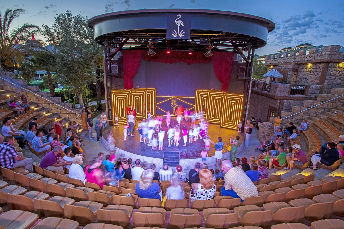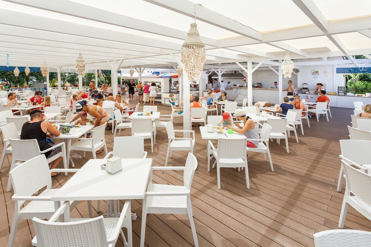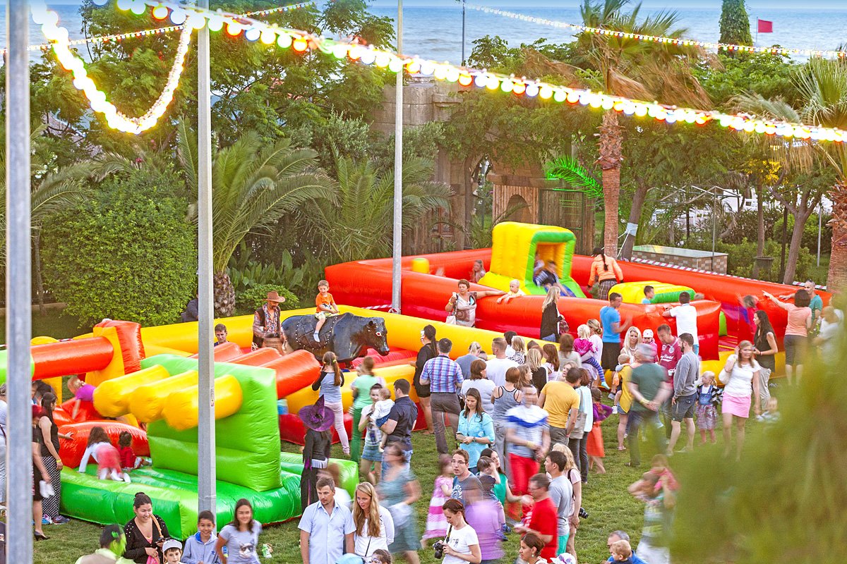 2 baseny: słodka woda, ok. 1100 m², gł. 1,1-1,4 m, wydzielona część dla dzieci ok. 23 m², gł. ok. 0,3 m, 3 zjeżdżalnie (powyżej 3. roku życia), i ok. 400 m², gł. 1,4 m; przy basenach bezpłatne parasole, leżaki, materace i ręczniki; kort tenisowy z wypożyczalnią sprzętu i oświetleniem (płatne ok. 10 EUR/godz.), fitness, aerobik, gimnastyka w basenie, minigolf, minipiłka nożna; miniklub (3-12 lat), plac i pokój zabaw dla dzieci, animacje dla dorosłych i dzieci, dyskoteka, amfiteatr; za opłatą: bilard, gry elektroniczne, sporty wodne na plaży; centrum spa: bezpłatne: łaźnia turecka, sauna, sauna parowa, płatne: masaże, zabiegi pielęgnacyjne.