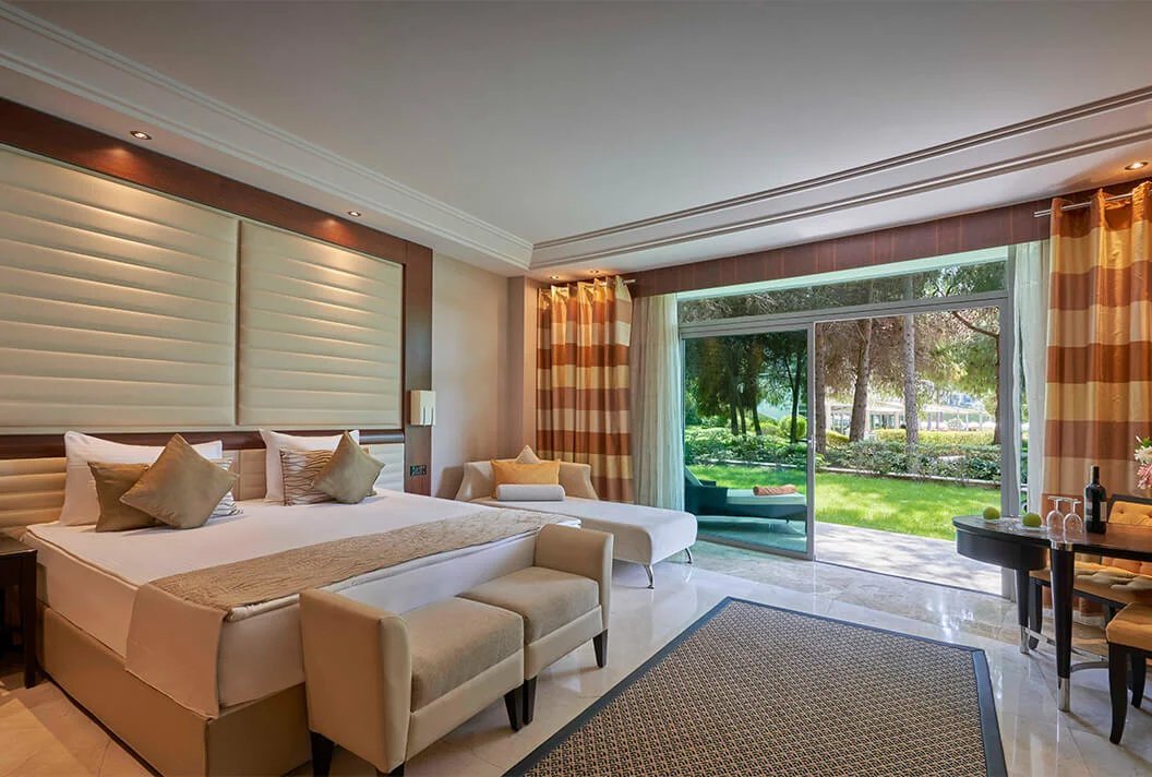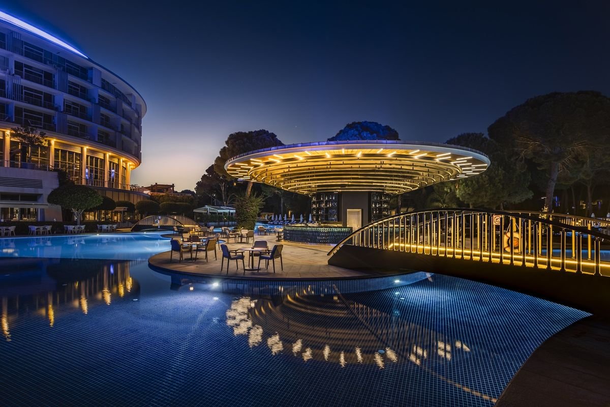 Luksusowy resort, nagradzany nie tylko wyróżnieniami, ale przede wszystkim świetnymi opiniami Gości. Ciekawie zaprojektowany, położony na rozległym terenie, otoczony sosnami, jest oazą idealną na słoneczny urlop! Tuż przy hotelu piękna plaża z pomostem do opalania, więc to świetna opcja dla plażowiczów i wielbicieli wpatrywania się w morski krajobraz. W hotelu można odpocząć przy basenie czy pograć w tenisa, a oferta rozrywkowa uwzględnia dzieciaki, dla których przygotowano zajęcia w jednym z miniklubów. Kilka restauracji i barów pozwoli wybrać kuchnię i miejsce idealne dla siebie, a wyjątkowo komfortowe i przestronne pokoje to świetne miejsce na wypoczynek po dniu pełnym wrażeń. Koniecznie zwiedź malowniczą okolicę i wybierz się do starożytnego miasta Aspendos!
