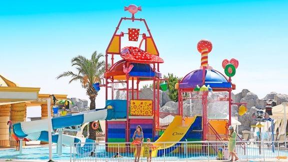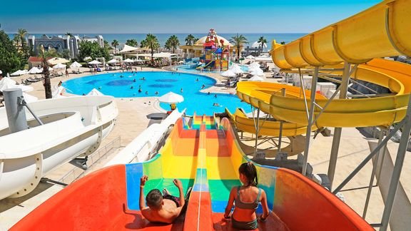 •aquapark: 5 zjeżdżalni dla dzieci i 4 dla dorosłych•przy basenach bezpłatne parasole, leżaki, materace i ręczniki