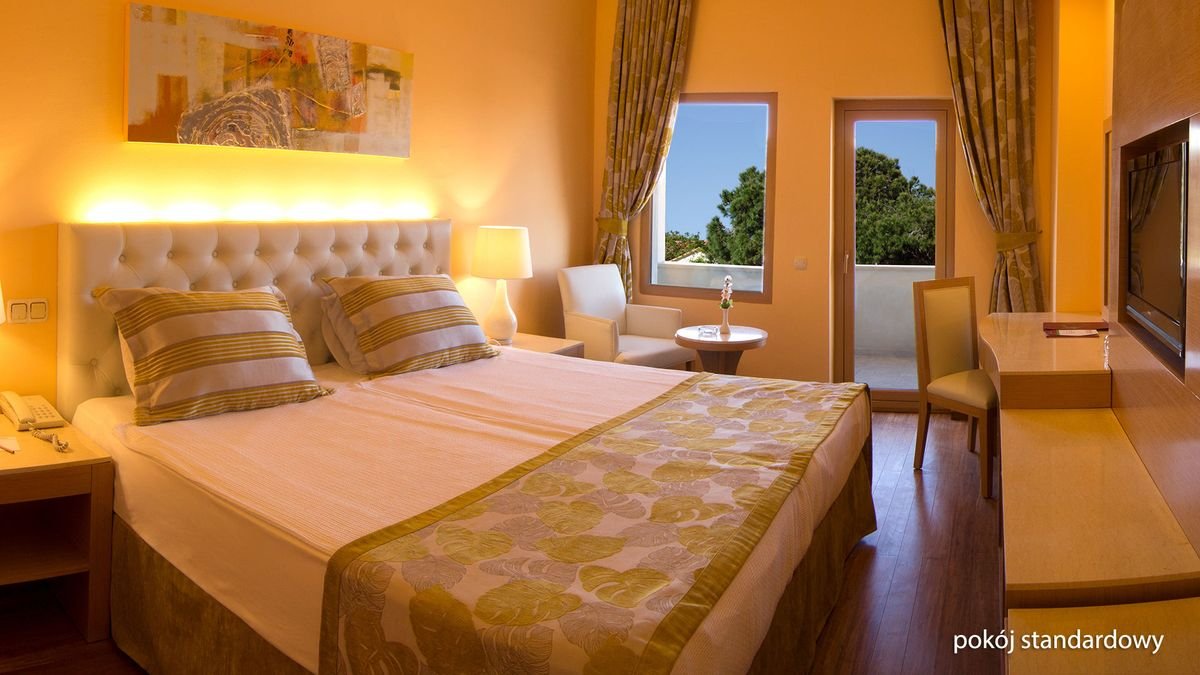 Stylowy, nawiązujący wystrojem do starożytnego Rzymu, idealnie sprawdzi się zarówno na rodzinne, aktywne wakacje, jak i wyjazd we dwoje. Położony na rozległym terenie, pośród zieleni i tuż przy szerokiej plaży, oferuje komfortowy pobyt i mnóstwo atrakcji. Duże baseny, zjeżdżalnie, wodny plac zabaw dla dzieci, fantastyczny miniklub, animacje i urozmaicona oferta sportowa nie pozwolą na nudę! Kalorie uzupełnisz w jednej z kilku restauracji, a po aktywnym dniu wypoczniesz w wygodnych pokojach wyposażonych we wszystkie udogodnienia.