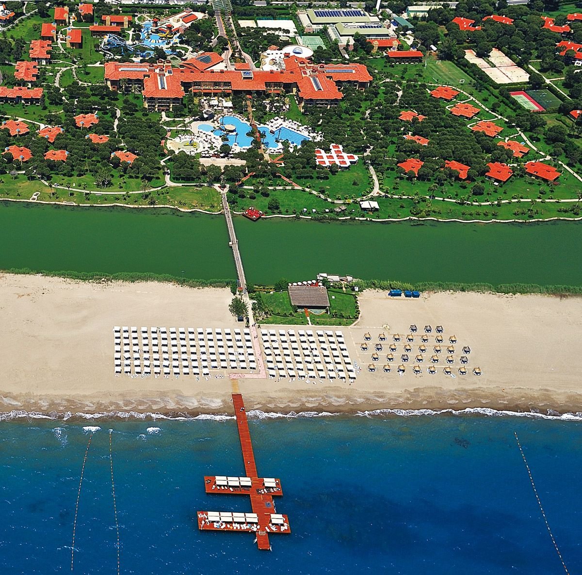 Prawdziwe rodzinne wakacje w luksusowym wydaniu! Położony w bliskiej odległości od Belek, regionu słynącego z pięknej, piaszczystej plaży i bogatej oferty sportów wodnych oferuje gościom najwyższą jakość usług gwarantowaną przez prestiżową sieć hoteli Gloria Hotels. Eleganckie pokoje urządzone z dbałością o każdy detal zadowolą najbardziej wymagających klientów. Największą dumą hotelu jest prywatny, profesjonalny aquapark, który umili pobyt nie tylko najmłodszym. Na amatorów golfa, bezpośrednio przy hotelu, czekają dwa 18-dołkowe i jedno 9-dołkowe pole golfowe. Do prywatnej, piaszczystej plaży, wyróżnionej certyfikatem Błękitna Flaga, prowadzi uroczy mostek nad rzeką, która płynie przez pięknie zaprojektowany, ogromny ogród.