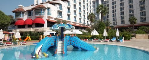 Atrakcyjnie położony w ogrodzie tuż przy pięknej plaży z barem ultra all inclusive, jest doskonałym miejscem na relaks w swobodnej atmosferze. Wakacyjny kompleks słynie przede wszystkim z bogatego zaplecza sportowo-rekreacyjnego z basenami, zjeżdżalniami i możliwością uprawiania sportów, jak również z eleganckiego Spa, które rozpieszcza ciało i duszę. Tureckie wakacje przeplatają się tutaj z włoskimi akcentami - w szczególności obsługą serwującą przekąski rodem z Italii. Stylowe restauracje rozpieszczają smakiem, a wieczorne animacje i dyskoteka pozwolą spalić kalorie największym smakoszom.