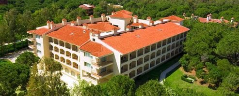 : pięciogwiazdkowy, elegancki, zbudowany w 1993 r., rozbudowany w 2005 r. (budynek Zeus), budynek główny (pokoje standardowe), 7 pięter, 3 windy, budynek Zeus (pokoje superior), 3 piętra, 2 windy, 4 budynki Apollo (część klubowa), 2 piętra; w budynku głównym: lobby, całodobowa recepcja, restauracja główna Bella Mare - dania w formie bufetu, kuchnia międzynarodowa, show - cooking, restauracje à la carte (czynne: 19.00 - 23.00 w wyznaczone dni): Adriatico - dania rybne, Mediterraneo - kuchnia śródziemnomorska, Pasta Della Mamma - kuchnia włoska; w restauracjach dostępne foteliki dla dzieci (oprócz Pasta Della Mamma); bar w lobby, bar na plaży, bar Relax, bar przy basenie, disco - bar, kantor, sklepy: pocztówki, pamiątki, zegarki, obuwie; centrum konferencyjne dla 890 osób, taras z widokiem na morze, ogród, bezpłatny internet bezprzewodowy w lobby; za opłatą: kawiarenka internetowa, room - service, opiekunka do dziecka, fryzjer, pralnia, wypożyczalnia rowerów; pokoje dla niepełnosprawnych; akceptowane karty kredytowe: Visa, MasterCard, Diners Club.