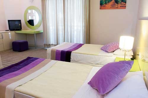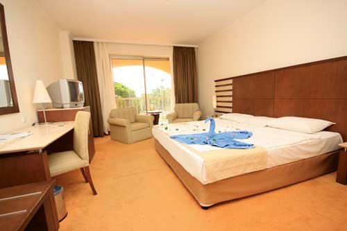 część klubowa: 2 - os. (możliwość 1 lub 2 dostawek), ok. 25 m², w jednym z 4 budynków Apollo, klimatyzowany, łazienka (wanna lub prysznic, wc; suszarka), telewizja satelitarna, telefon, sejf, mini-bar (codziennie uzupełniana woda; na powitanie napoje bezalkoholowe, woda); bezpłatne łóżeczko dla dziecka do 2 lat na zamówienie przed przyjazdem; balkon (stolik i krzesełka); widok na ogród; superior: 2-os. (możliwość 1 lub 2 dostawek), ok. 28 m², elegancki, w budynku Zeus; wyposażenie jak w części klubowej; rodzinny: w części klubowej; na zamówienie.