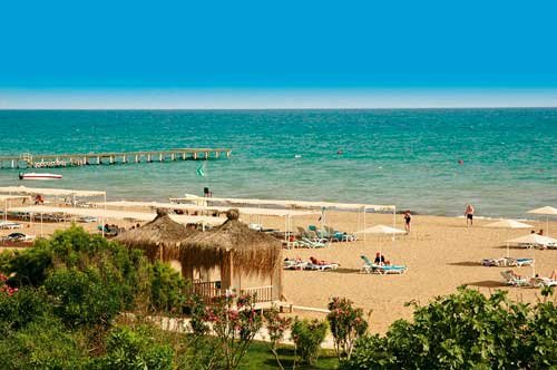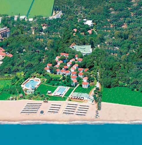 Położony na obszarze 60.000 m², w pięknym sosnowo-cytrusowym ogrodzie tuż przy piaszczystej plaży z barem hotelowym serwującym przekąski i napoje w opcji ultra all inclusive. Pozytywne opinie Gości zyskał przede wszystkim za funkcjonalne pokoje, miłą obsługę, atrakcje dla dzieci i ładne otoczenie - jednym słowem idealny wybór na rodzinne wakacje! Doskonała lokalizacja sprzyja odkrywaniu uroków starożytnego miasta Perge, jak również doskonaleniu umiejętności gry w golfa na jednym z wielu pól golfowych, dostępnych w okolicach hotelu.