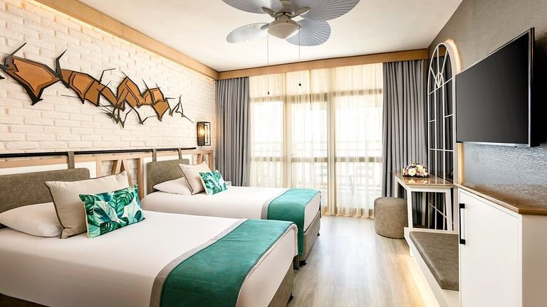Szukasz miejsca, gdzie każdy znajdzie coś dla siebie? Tutaj przygotowano atrakcje idealne zarówno dla dorosłych, jak i dzieci! Na Gości czekają przysmaki kuchni włoskiej, chińskiej i tureckiej, a przestronne pokoje gwarantują pełen komfort wypoczynku. Również dostępne są fantastyczne baseny i zjeżdżalnie wodne, a świetna zabawa w miniklubach i podczas animacji jest gwarantowana! Relaks przyniesie spa z sauną i hammam lub wypoczynek na plaży wyróżnionej certyfikatem Błękitna Flaga. Aktywnym spodobają się korty tenisowe, siłownia i siatkówka plażowa. Będzie to doskonałe miejsce na Twoje wakacje!