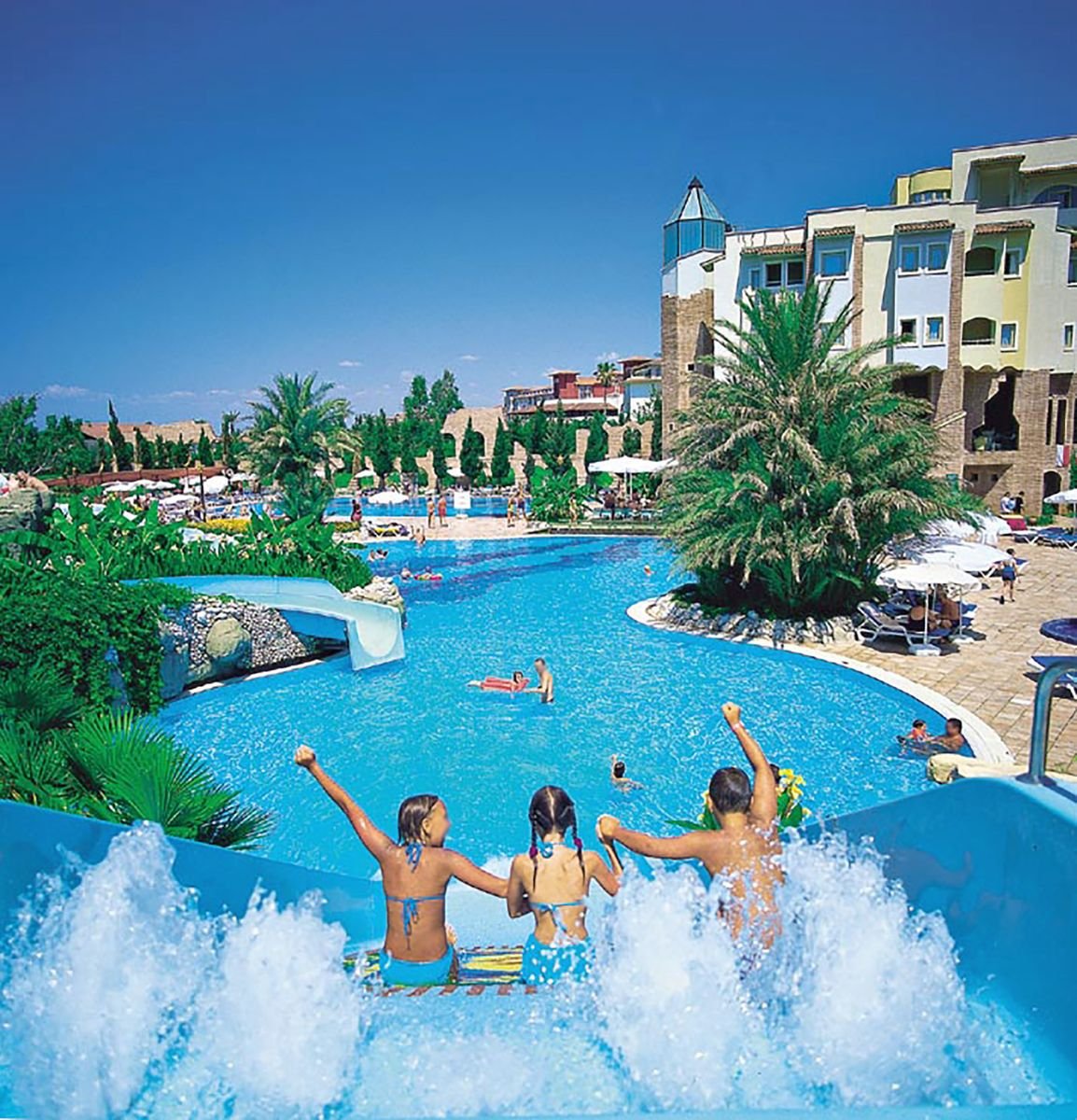 Elegancki, z animacjami i aquaparkiem. Na Gości czekają przysmaki kuchni włoskiej, chińskiej i tureckiej, a także dania z grilla. Spa z sauną i łaźnią turecką, korty tenisowe z możliwością nauki gry, a może wypoczynek na plaży wyróżnionej certyfikatem Błękitna Flaga? Wszystko to i wiele więcej czyni ten hotel doskonałym miejscem na wakacje z rodziną!