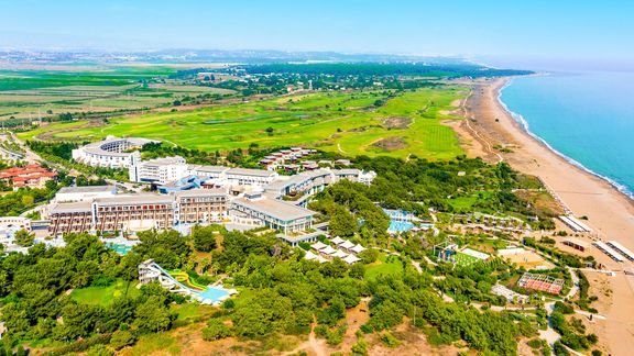 Doskonałe miejsce na rodzinny wypoczynek pełen atrakcji! Bogata oferta sportowa, 3 baseny na świeżym powietrzu, w tym basen ze zjeżdżalniami, miniklub dla dzieci i bardzo urozmaicona oferta animacyjna to propozycja, która przypadnie do gustu nie tylko najmłodszym Gościom. Długa na 2,5 km plaża i ogromny, zielony teren ucieszy miłośników natury i spacerów, a jedno z najlepszych pól golfowych w Turcji w z pewnością zostanie docenione przez zapalonych golfiarzy. Po dniu pełnym wrażeń warto odpocząć w hotelowym spa lub odprężyć się w jednym z eleganckich barów serwujących napoje przez całą dobę.
