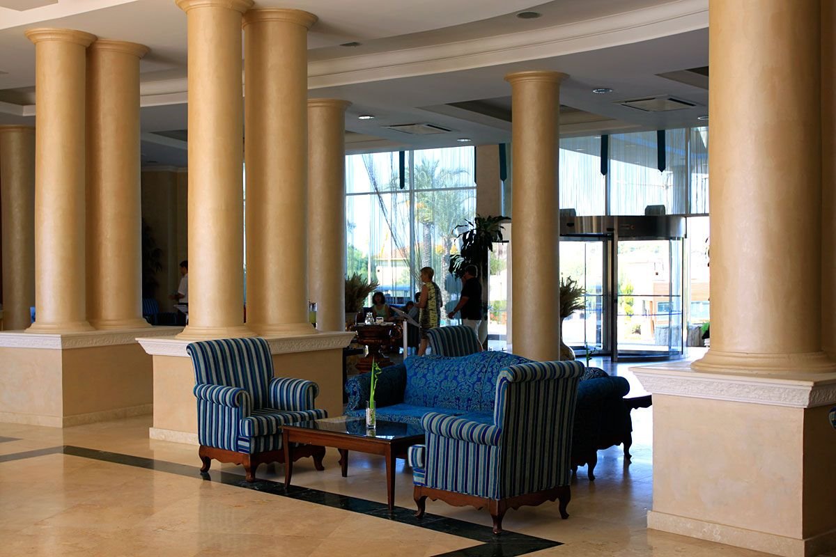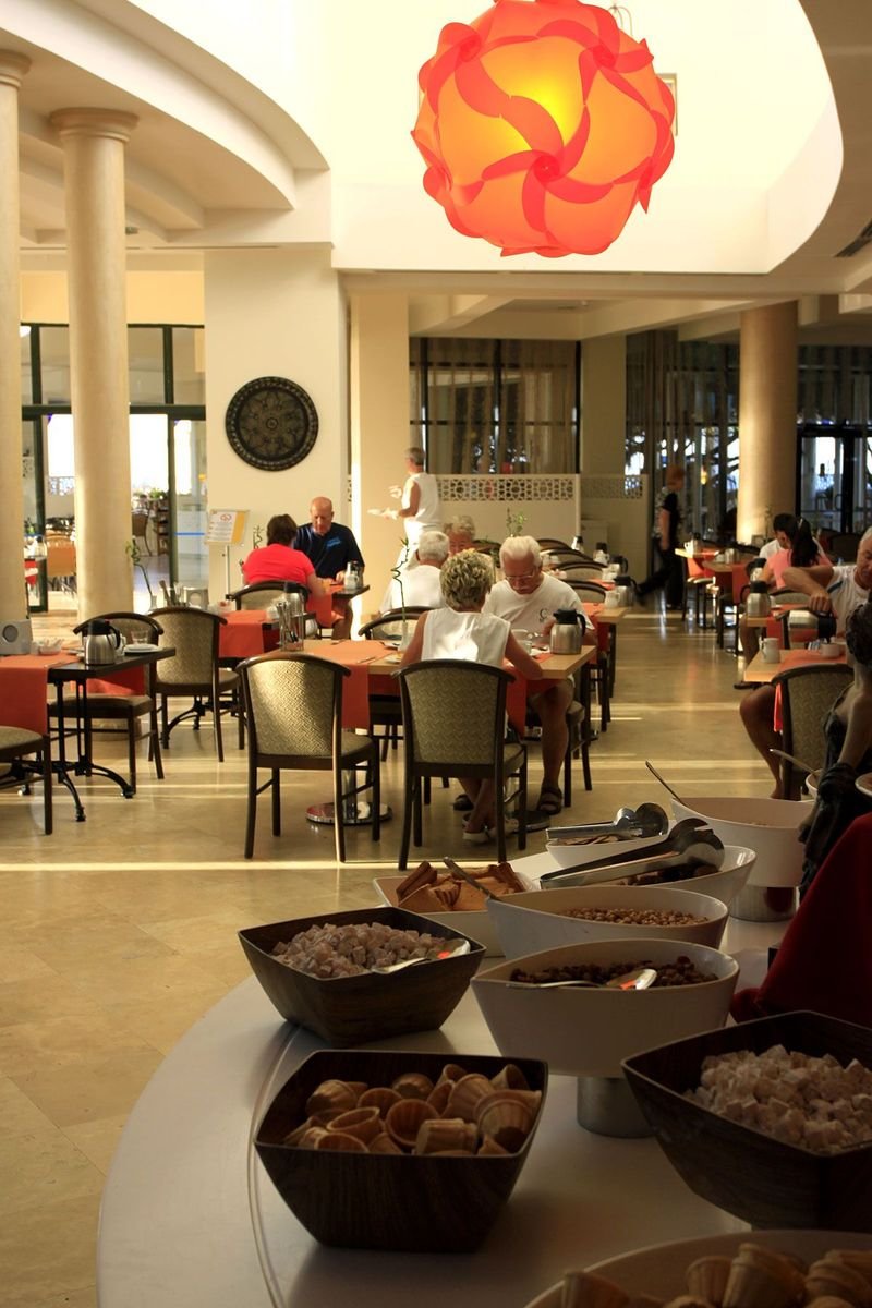 śniadanie (7.00-10.00), późne śniadanie (10.00-11.00), obiad (12.30-14.00), kolacja (19.00-21.30); przekąski (12.30-16.00), kawa, herbata i ciastko (16.30-17.30); nielimitowana ilość napojów bezalkoholowych i lokalnych alkoholi przez 24 godziny na dobę w barze w lobby; wymagane noszenie opasek all inclusive.