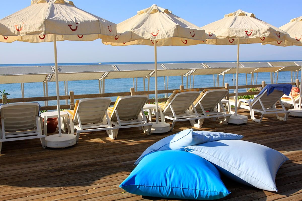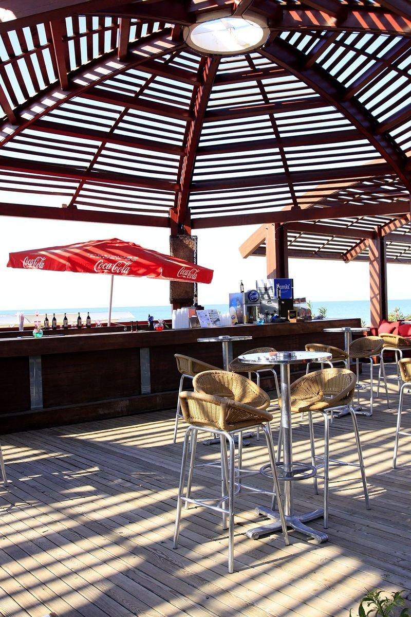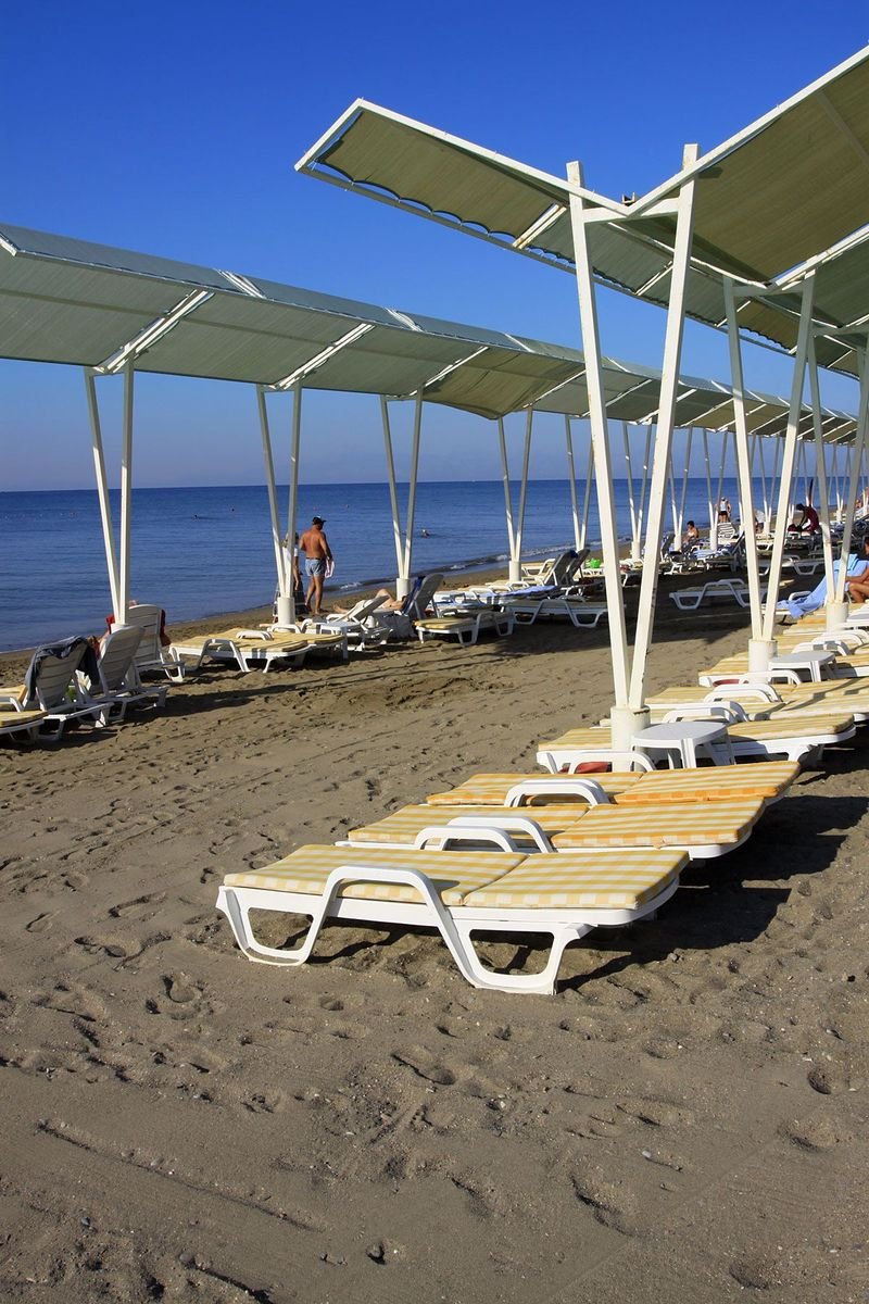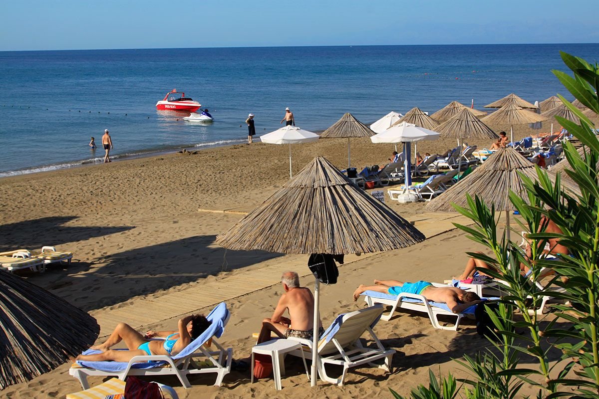 hotelowa, szeroka, piaszczysta, długa na ok. 180 m, łagodne zejście do morza, przy hotelu, bezpłatne leżaki, materace, parasole i ręczniki.