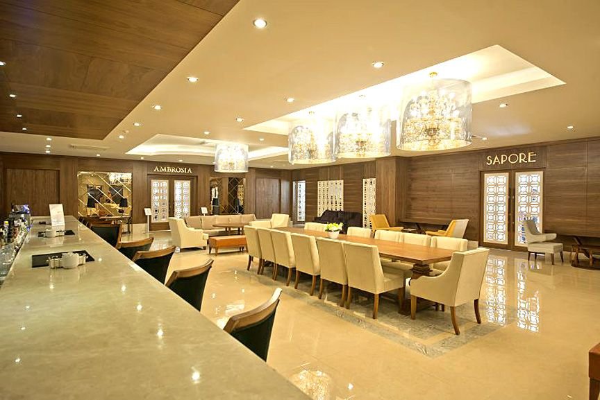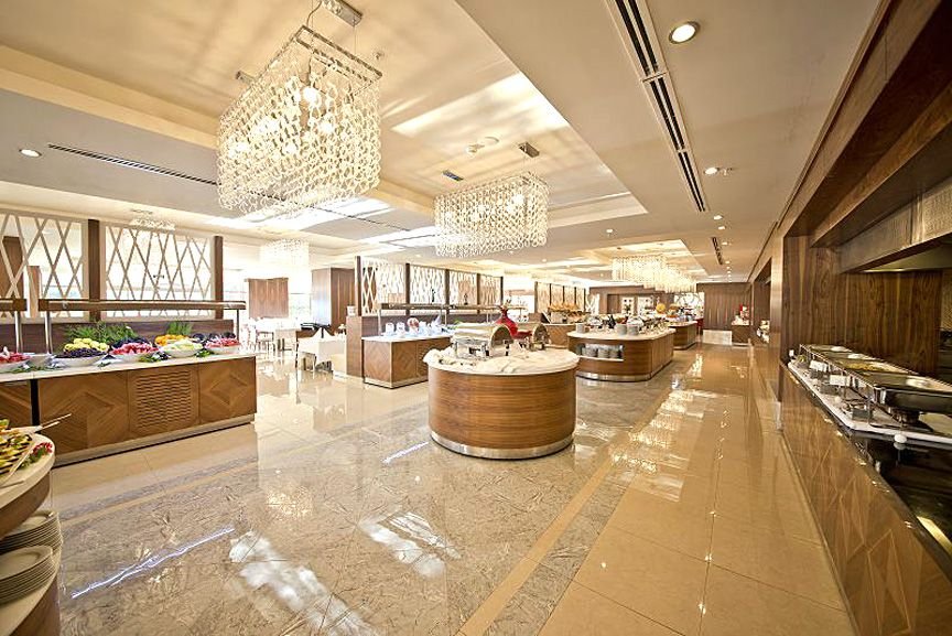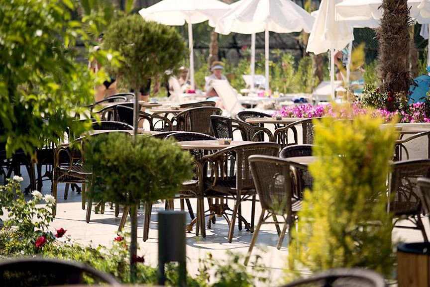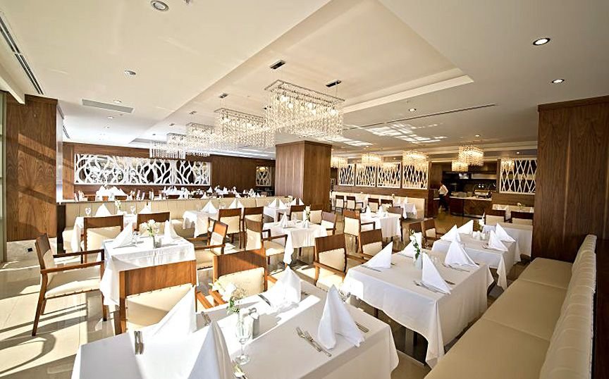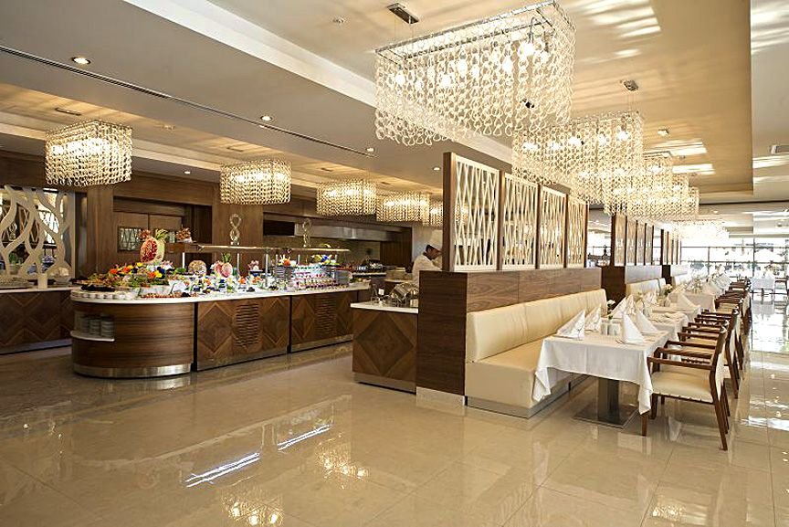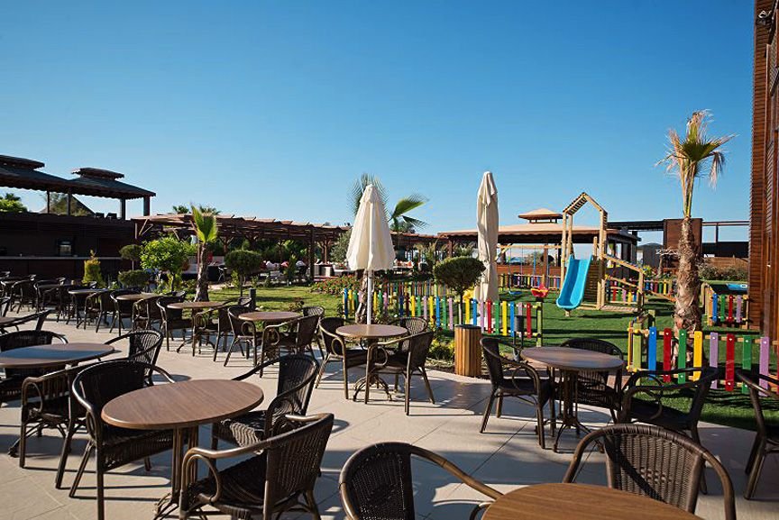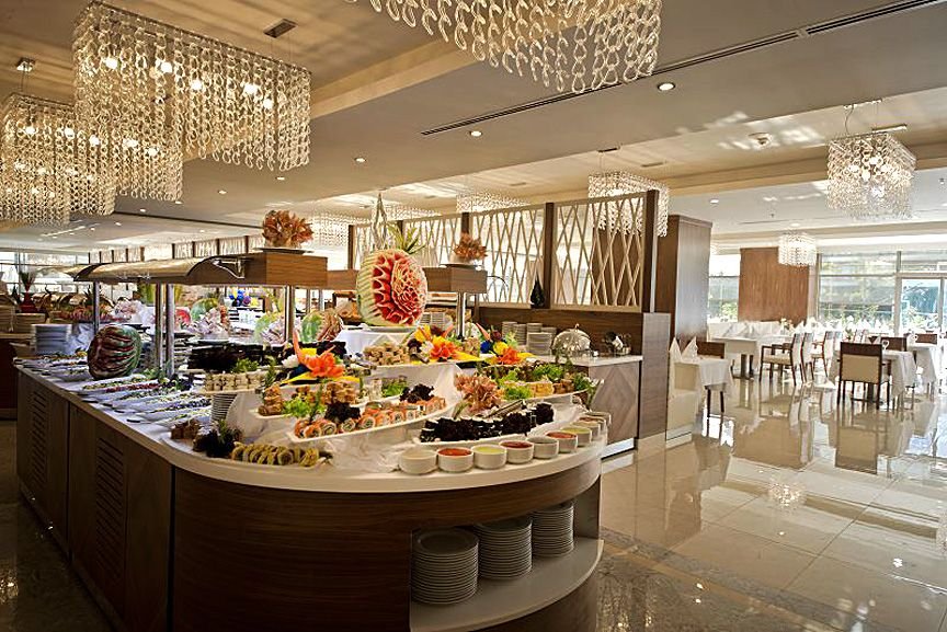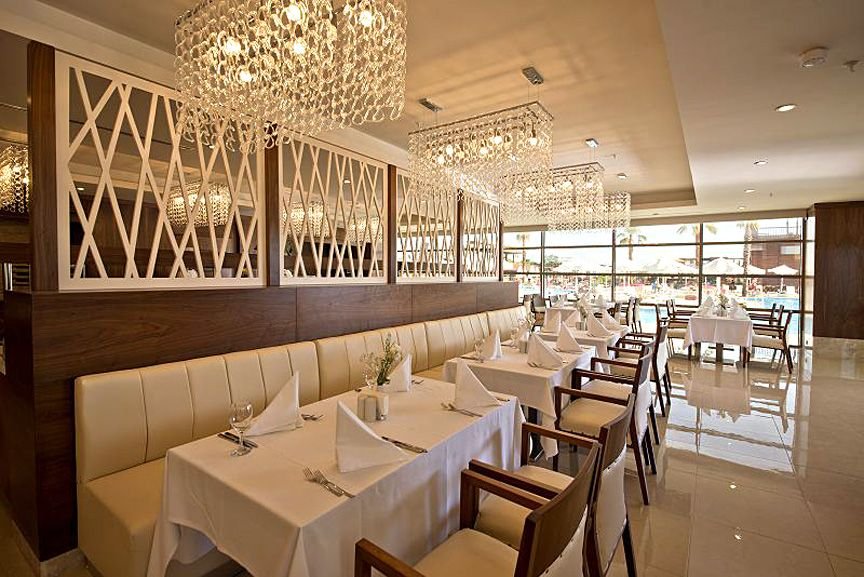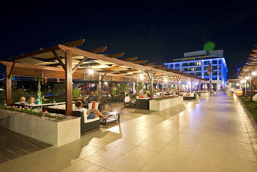 pięciogwiazdkowy, elegancki i nowoczesny, wybudowany w 2013r., odnowiony w 2014r., 208 pokoi, 1 budynek, 4 piętra, 2 windy, przestronne lobby, całodobowa recepcja, restauracja Ambrozja - dania w formie bufetu, kuchnia międzynarodowa, dostępne menu dla dzieci, 2 restauracje à la carte: kuchnia turecka, kuchnia śródziemnomorska; w restauracjach dostępne foteliki dla dzieci; bar przy basenie, vitamin-bar i nectar vitamin bar(płatne), bar w lobby, bar sentinus, disco-bar, centrum gier, minimarket; centrum konferencyjne dla 300 osób, bezpłatny internet bezprzewodowy w lobby; za opłatą: punkt internetowy, room-service, opiekunka do dziecka, fryzjer, pralnia; pokoje dla niepełnosprawnych; akceptowane karty kredytowe: Visa, MasterCard.