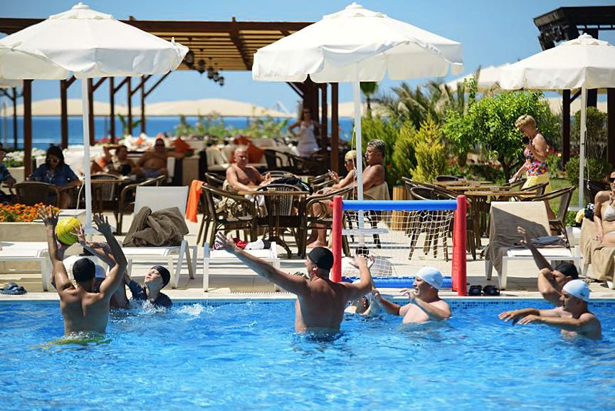 basen, nieregularny kształt, słodka woda, ok. 480 m², gł. 1,4 m, basen ze zjeżdżalniami, słodka woda, ok. 64 m², gł. 1,4 m, brodzik dla dzieci, słodka woda, ok. 11 m², gł. ok. 0,4 m, przy basenach bezpłatne parasole, leżaki i materace; basen kryty, nieregularny kształt, słodka woda, ok. 44 m², gł. 1,4 m, brodzik dla dzieci,ok. 4 m², gł. 0,4m; kort tenisowy, tenis stołowy, koszykówka, aerobic, gimnastyka, fitness, rzutki, bilard; plac zabaw dla dzieci, miniklub (4-12 lat), minidisco, dyskoteka, animacje dla dorosłych i dzieci: muzyka na żywo, wieczorne pokazy; za opłatą: oświetlenie kortu i wypożyczalnia sprzętu; sporty wodne na plaży; centrum spa: bezpłatnie: wstęp do łaźni tureckiej, sauna, łaźnia parowa; płatne: aromaterapia, zabiegi kosmetyczne, masaże: relaksacyjne, balijskie, klasyczne, gorącymi kamieniami.