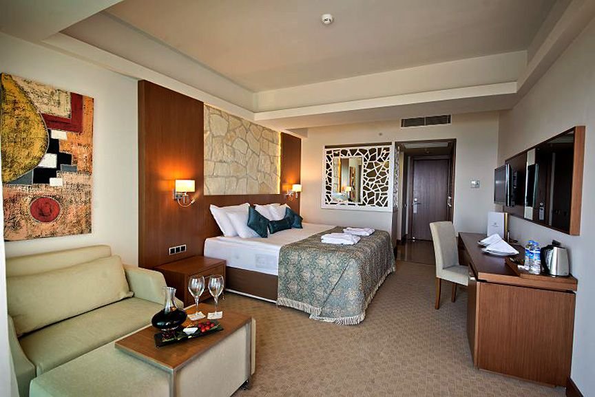 Elegancki hotel z bogatym zapleczem sportowo-rekreacyjnym z basenami i zjeżdżalniami, jak również z profesjonalnym centrum spa. Bezpośrednio przy pięknej piaszczysto-żwirkowej plaży, gdzie można skorzystać z bogatej gamy sportów wodnych. Niedaleko od znanego kurortu, jakim jest Belek, a także tak znanych miejsc, jak Perge czy Aspendos. Na miejscu stylowe restauracje serwujące nie tylko lokalne przysmaki i wieczorne animacje oraz dyskoteka, która pozwoli spalić kalorie największym smakoszom.