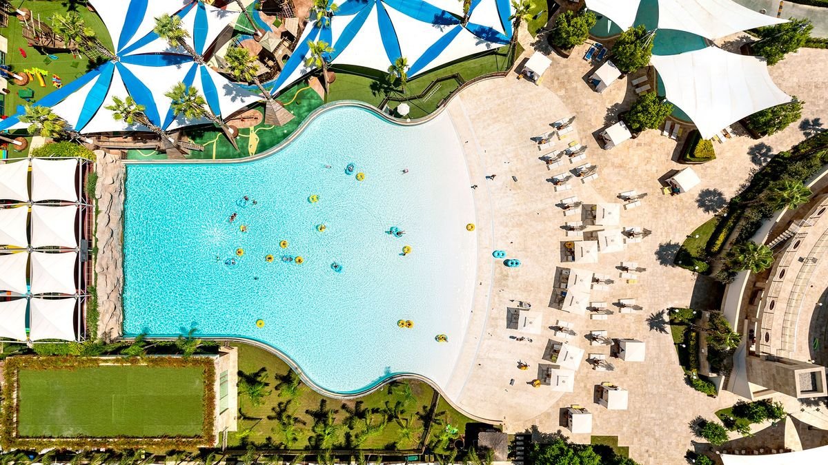 Prawdziwy raj na ziemi, bezpośrednio przy pięknej piaszczystej plaży wyróżnionej certyfikatem Błękitnej Flagi! Podczas pobytu Goście mogą korzystać z bogatego zaplecza sportowo-rekreacyjnego, obejmującego baseny, aquapark, centrum spa, boiska do gier, najmłodsi będą szczególnie zadowoleni z miniklubów, zjeżdżalni czy animacji, podczas których miły czas spędzi cała rodzina. Warto odwiedzić również pobliski park rozrywki, do którego masz bezpłatny wstęp i transport! Na terenie hotelu kilkanaście restauracji i barów, w których każdy znajdzie coś dla siebie pośród dań z całego świata, a cukiernie zapewnią słodki deser po smacznym obiedzie. Dzięki harmonijnemu połączeniu komfortu i piękna otoczenia, każdy pobyt tu staje się wyjątkowym wakacyjnym przeżyciem, nie zastanawiaj się dłużej i zarezerwuj swój wymarzony urlop!