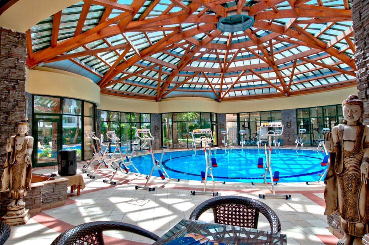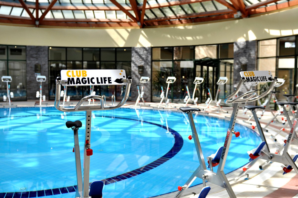 3 baseny w części Life, nieregularny kształt, słodka woda, od 50 do 1400 m², przy jednym z basenów 3 zjeżdżalnie, 4 baseny w części Mood, nieregularny kształt, słodka woda, od 7 do 425 m², przy basenie bezpłatne parasole, leżaki i ręczniki; 2 korty tenisowe, mini piłka nożna, rzutki, boccia, zumba, nordic walking, aerobic, aqua aerobic, pilates, stretching, salsa, piłka wodna, siłownia, raz w tygodniu łucznictwo; plac i pokój zabaw dla dzieci, 4 minikluby: Magic Mungo Club (3-6 lat), Magic Kids Club (7-12 lat), Teens Tref (13-16 lat), Magic Baby Club (do 12 m-cy, płatny), amfiteatr, dyskoteka, animacje dla dzieci i dorosłych w sezonie letnim: muzyka na żywo, pokazy, kino na powietrzu, siatkówka plażowa; centrum SPA: bezpłatnie: basen kryty z wydzieloną częścią dla dzieci, ok. 123 m², podgrzewany, sauna, łaźnia turecka; za opłatą: masaże, zabiegi na twarz i ciało; prywatne lekcje tenisa, bilard, motorowe sporty wodne, katamaran.