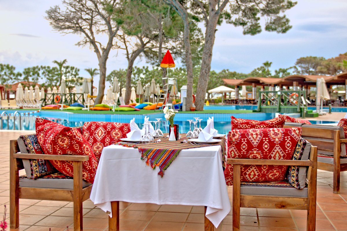 śniadanie (7.00-11.00), obiad (12.30-14.40), kolacja (19.00-21.30) w formie bufetu w restauracji Magic; dodatkowo kącik dla dzieci Mungo Kids (12.00-13.00, 18.00-19.00); raz na pobyt kolacja w wybranej restauracji a la carte (wymagana wcześniejsza rezerwacja); przekąski w barze Life przy basenie (12.30-16.00); napoje bezalkoholowe i lokalne napoje alkoholowe w wyznaczonych barach 24h.