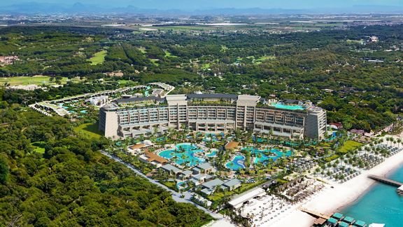 Nowiusieńki, pięciogwiazdkowy i po prostu... wyjątkowy, zaprasza na urlop marzeń w słonecznej Turcji! Teren hotelowy jest pełen zieleni, również wewnątrz, a poza wszechobecnymi roślinami zachwyci Cię nieoczywisty dizajn, 17 klimatycznych restauracji z przysmakami z różnych stron świata i kilkanaście barów oraz pięknie zaaranżowane baseny, w tym infinity na dachu (tylko dla dorosłych!), przy których aż chce się wypoczywać. Pokoje są przestronne i luksusowe, doskonałe dla wymagających, w łazience znajdziesz ekskluzywne kosmetyki marki Bvlgari, a te widoki... bajka! Na błogi relaks zaprasza spa, gdzie doświadczysz m.in. niezwykłego rytuału hammam, a w przerwie od leniuchowania nie zapomnij się poruszać – poćwicz na siłowni, zagraj w koszykówkę lub rozerwij się słuchając muzyki na żywo czy biorąc udział w animacjach dedykowanych dorosłym i młodszym Gościom, na których dodatkowo czekają 2 minikluby i pokój zabaw. Woda to Twoje naturalne środowisko? Złap za sprzęt i sprawdź się w sportach wodnych, a jeśli wolisz tylko ją obserwować, rozsiądź się na leżaku na piaszczystej plaży i zapomnij o otaczającym świecie!