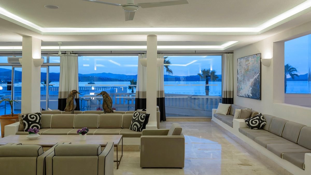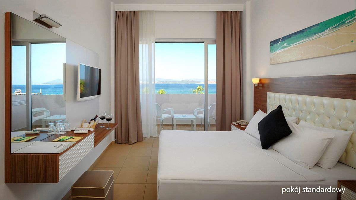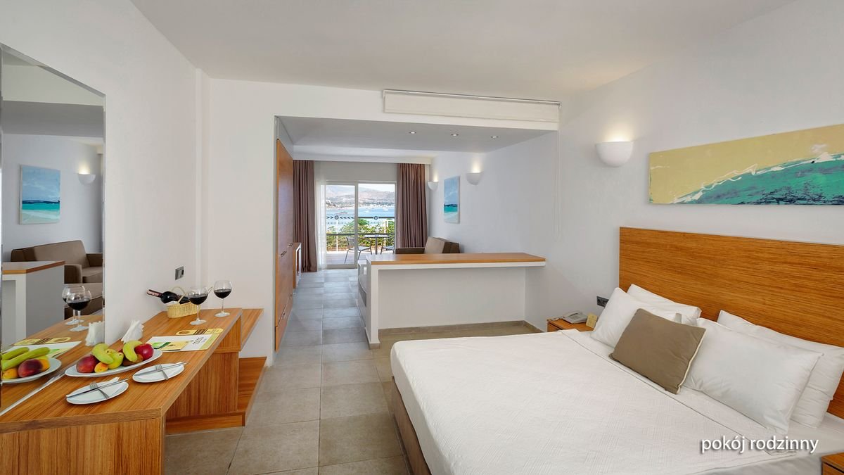 standardowy w części klubowej: 2-os. (możliwość 1 dostawki), ok. 35 m², zadbany, indywidualnie sterowana klimatyzacja, łazienka (prysznic, wc; suszarka), telewizja satelitarna, telefon, sejf, minibar (codziennie uzupełniany w wodę); bezpłatne łóżeczko dla dziecka do 2 lat na zamówienie przed przyjazdem; taras (stolik i krzesełka), widok na morze; rodzinny w części klubowej: 2-os. (możliwość 1, 2 lub 3 dostawek dla dzieci), ok. 45 m², zadbany, wyposażenie jak w pokoju standardowym; sejf płatny, widok na morze.