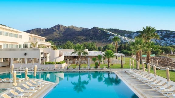 Położony na rozległym terenie, przy słynnej piaszczystej plaży Camel Beach z bezpłatnym serwisem, zaprasza na wspaniały, rodzinny wypoczynek w promieniach tureckiego słońca. Stylowe wnętrza, przestronne pokoje oraz miła i profesjonalna obsługa to atuty hotelu. Na miejscu jest basen, z którego można podziwiać piękny widok na Morze Egejskie. Dla najmłodszych przygotowano brodzik, pokój zabaw i miniklub, cała rodzina spędzi miło czas podczas hotelowych animacji. Świetnym miejscem na relaks jest centrum spa oferujące szereg zabiegów pielęgnacyjnych na twarz i ciało.