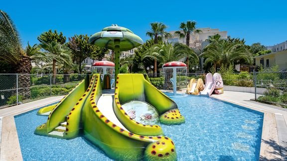 Jeden z najlepszych hoteli czterogwiazdkowych w Bodrum, o bardzo dobrym standardzie obsługi i znakomitej kuchni. Oferuje wygodne zakwaterowanie w otoczonej zielenią, eleganckiej części hotelowej. Mnóstwo atrakcji zarówno dla starszych, jak i młodszych Gości. Basen ze zjeżdżalnią, miniklub, plac zabaw dla dzieci i świetnie przygotowane animacje połączone z wieczornymi występami czynią to miejsce idealnym na aktywne, rodzinne wakacje.