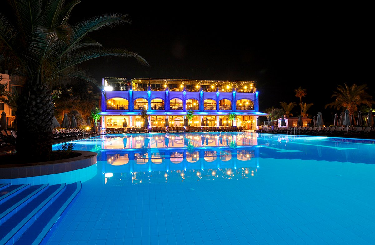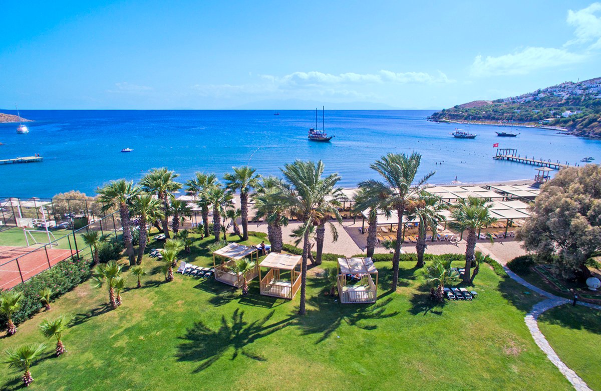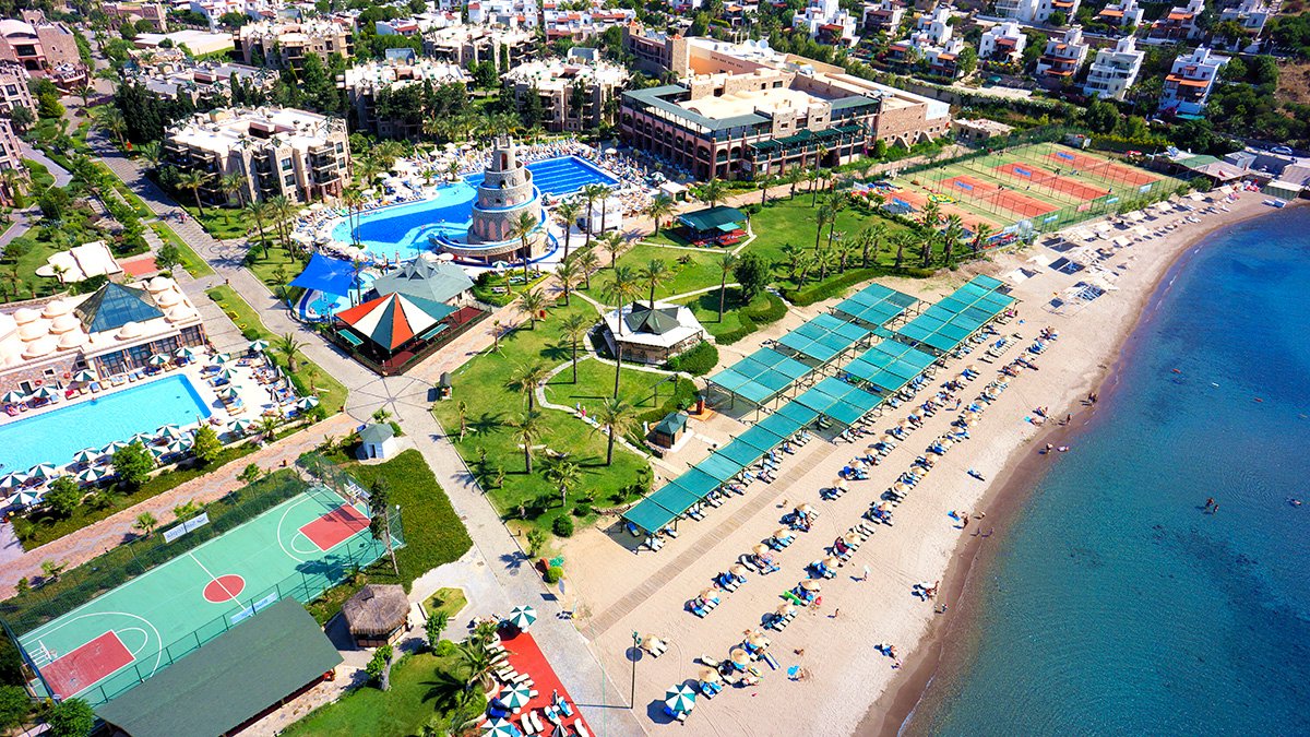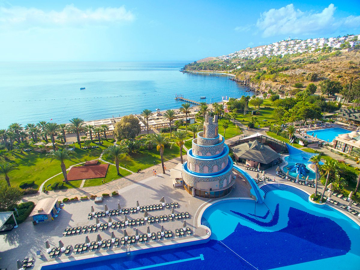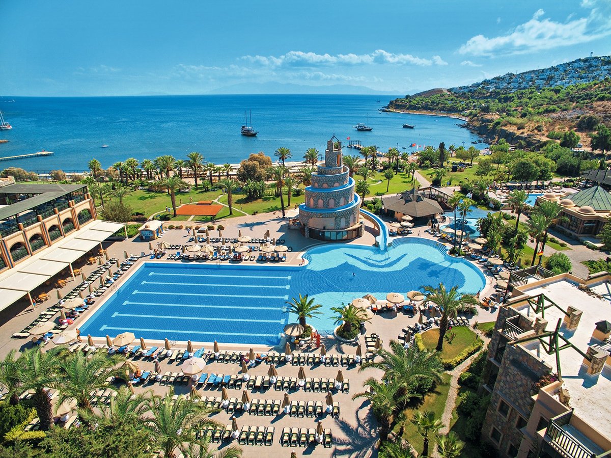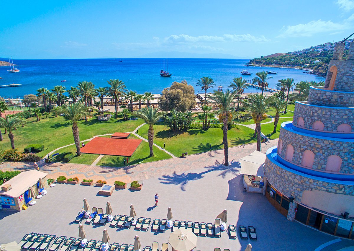 Doskonała wakacyjna atmosfera i moc atrakcji dla całej rodziny gwarantowane! Położony w pięknej zatoce, bezpośrednio przy plaży z bezpłatnym serwisem i barem all inclusive oferuje szeroką ofertę sportowo-rekreacyjną. Do dyspozycji gości są 2 baseny, w tym 1 ze zjeżdżalnią w kształcie wieży, 2 bary i 2 restauracje. Dla aktywnych centrum fitness, korty tenisowe oraz zajęcia sportowe z animatorami. Dla najmłodszych Gości przygotowano brodzik ze zjeżdżalnią, miniklub i wspólne zabawy podczas animacji. Komfortowe pokoje są przestronne i dobrze wyposażone.