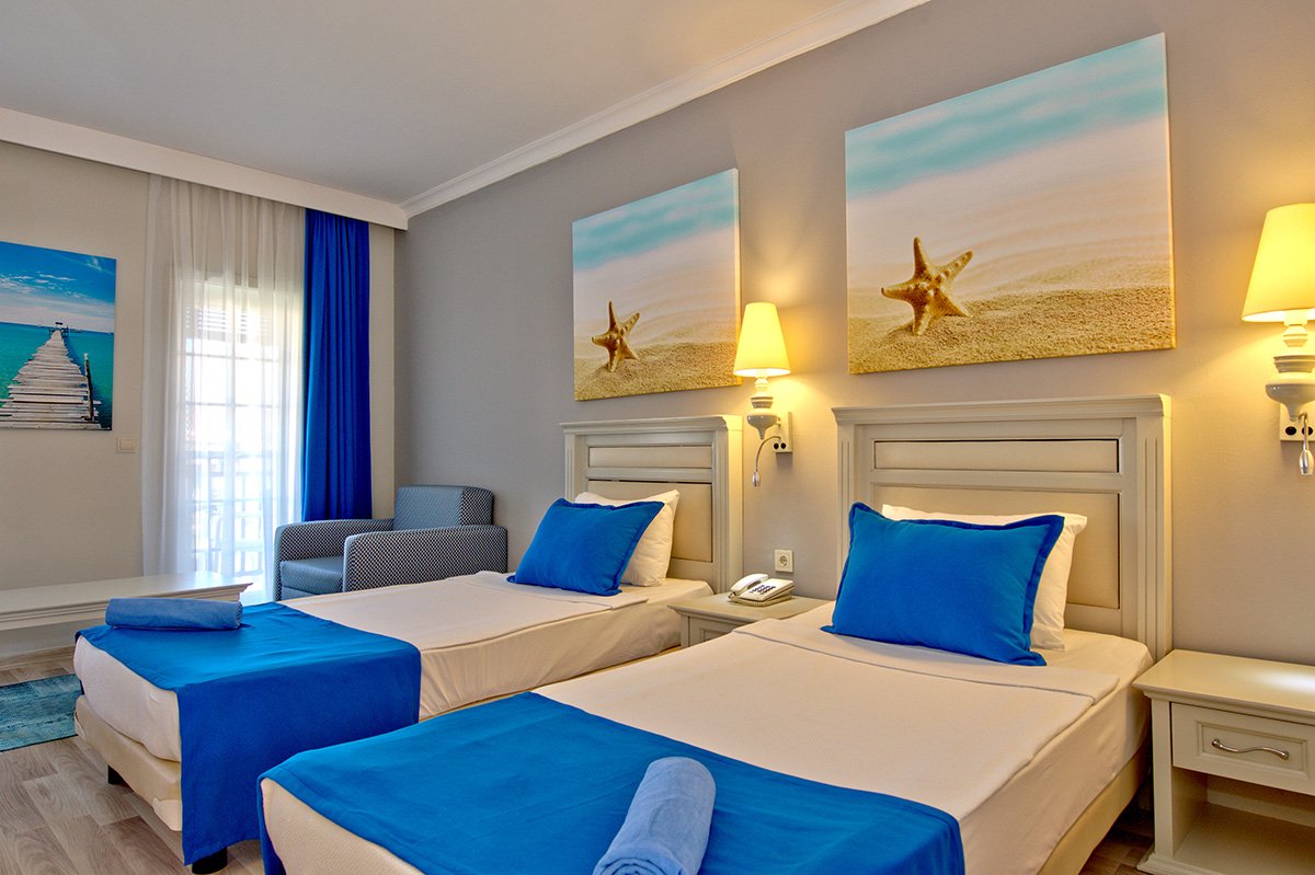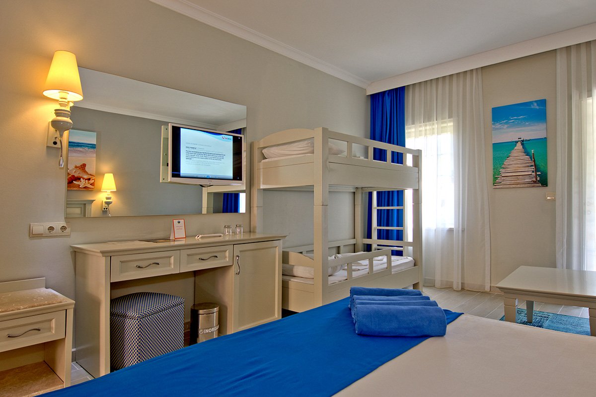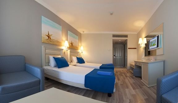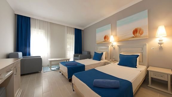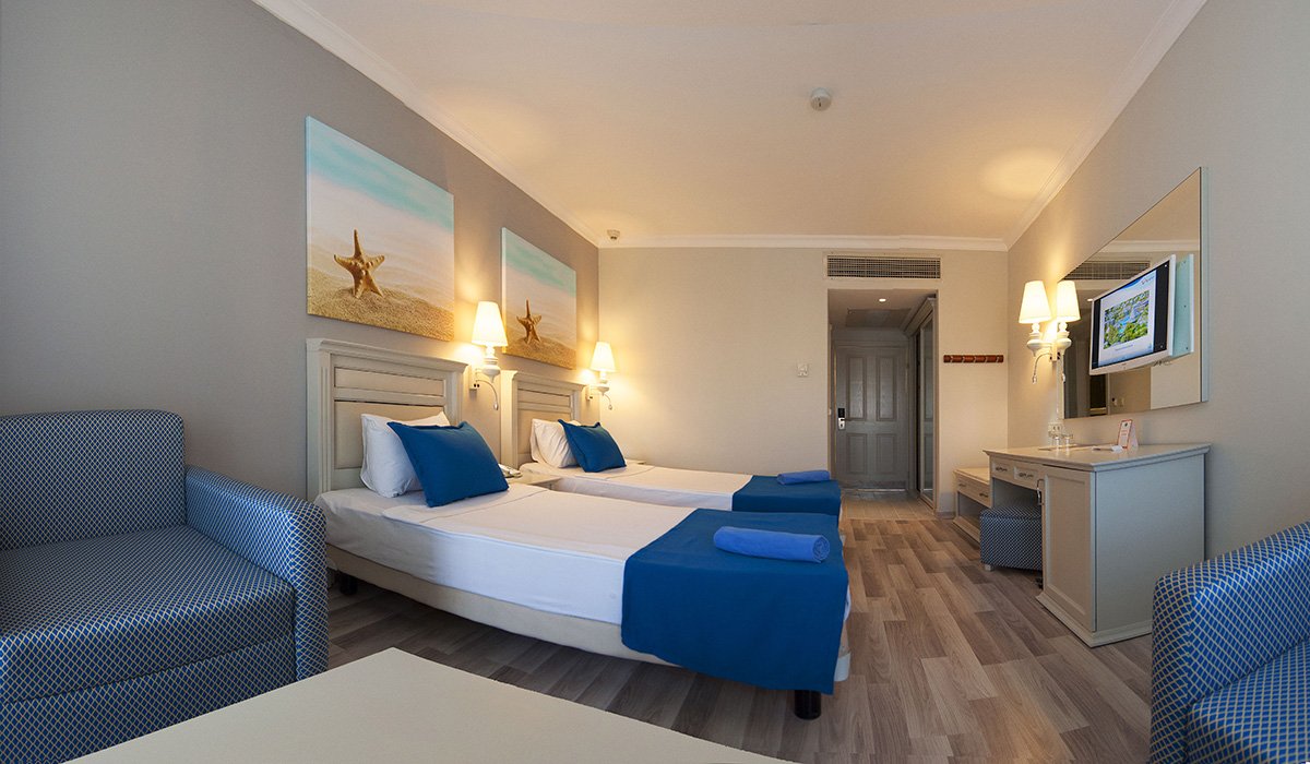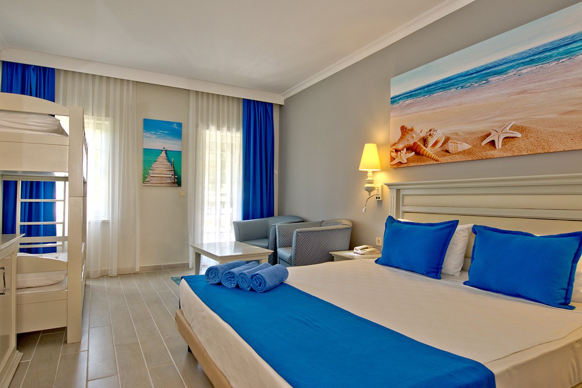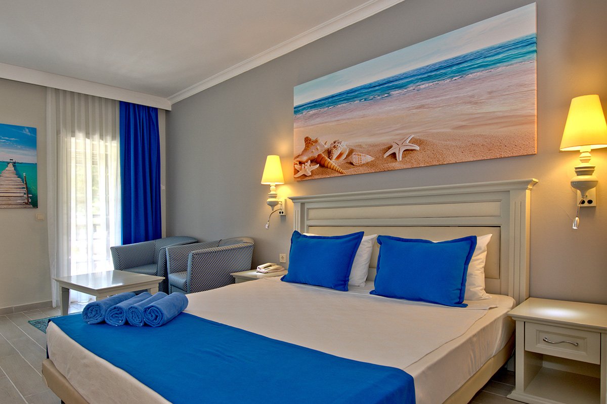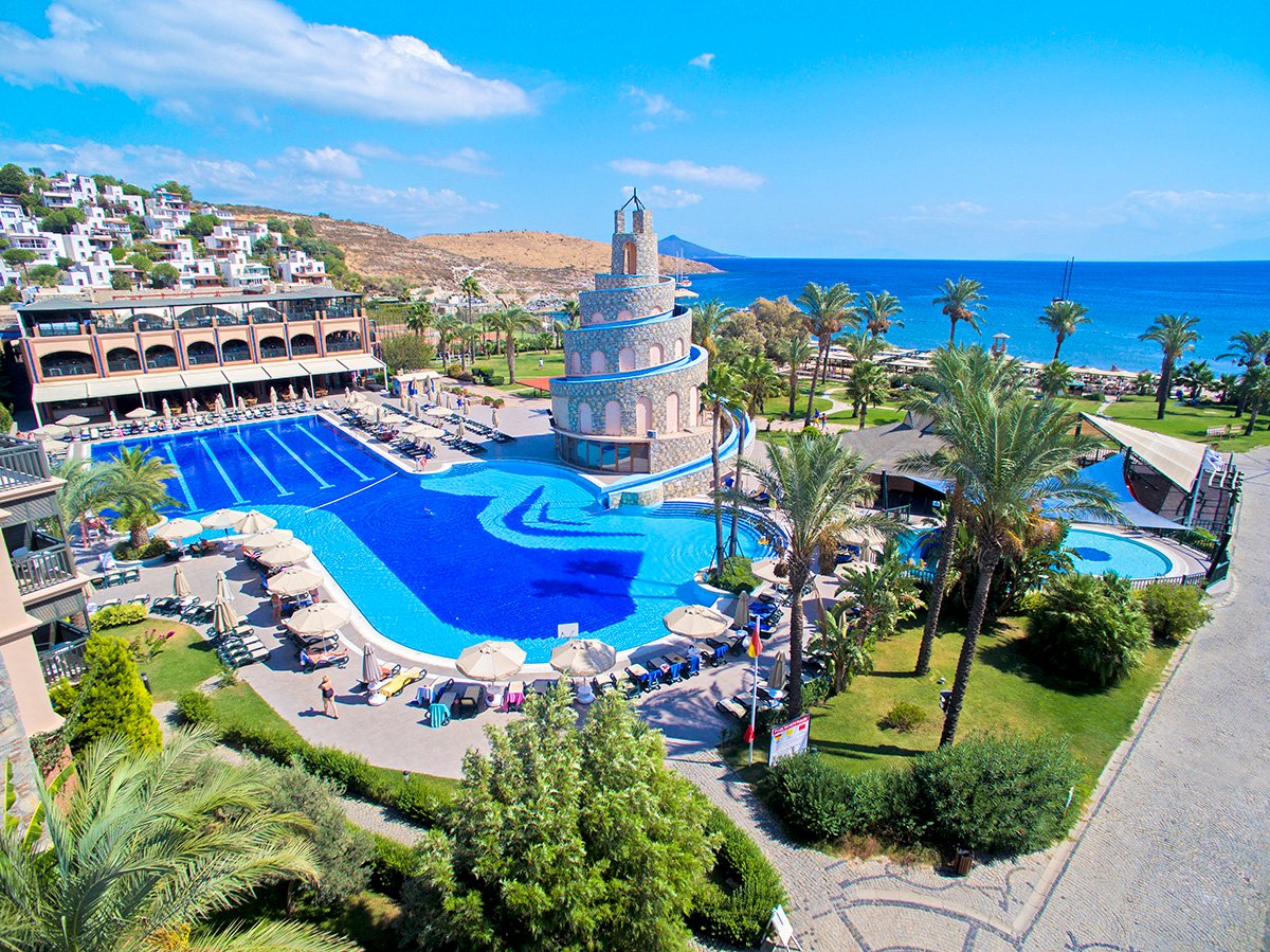 Doskonała wakacyjna atmosfera i moc atrakcji dla całej rodziny gwarantowane! Położony w pięknej zatoce, bezpośrednio przy plaży z bezpłatnym serwisem i barem all inclusive oferuje szeroką ofertę sportowo-rekreacyjną. Do dyspozycji gości są 2 baseny, w tym 1 ze zjeżdżalnią w kształcie wieży, 2 bary i 2 restauracje. Dla aktywnych centrum fitness, korty tenisowe oraz zajęcia sportowe z animatorami. Dla najmłodszych Gości przygotowano brodzik ze zjeżdżalnią, miniklub i wspólne zabawy podczas animacji. Komfortowe pokoje są przestronne i dobrze wyposażone.