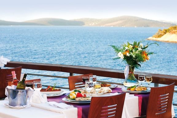 Pięknie położony w malowniczej zatoce z widokiem na morze. Mocną strona hotelu jest wyśmienita kuchnia, gdzie poza potrawami kuchni międzynarodowej można spróbować oryginalnych dań tureckich, włoskich, chińskich, czy przysmaków z ryb. O dobre humory najmłodszych dbają animatorzy, starsi mogą oddać się sportowym pasjom lub błogiemu lenistwu przy basenie czy w hotelowym centrum spa.