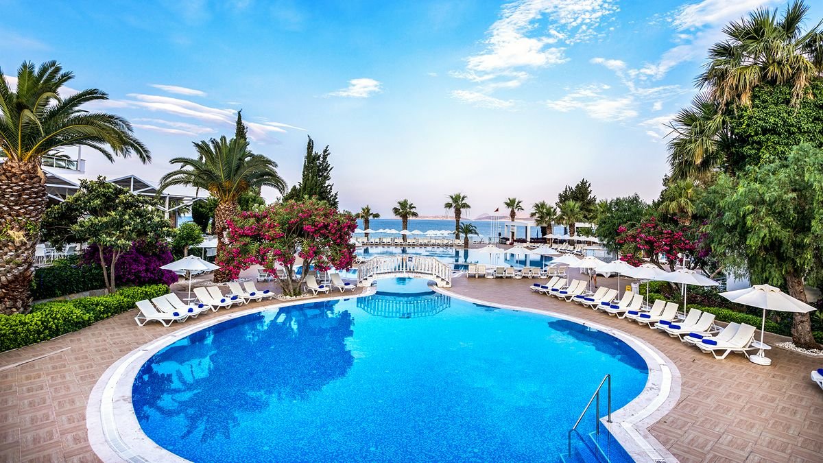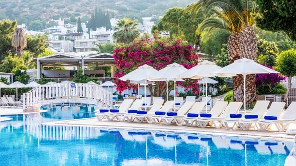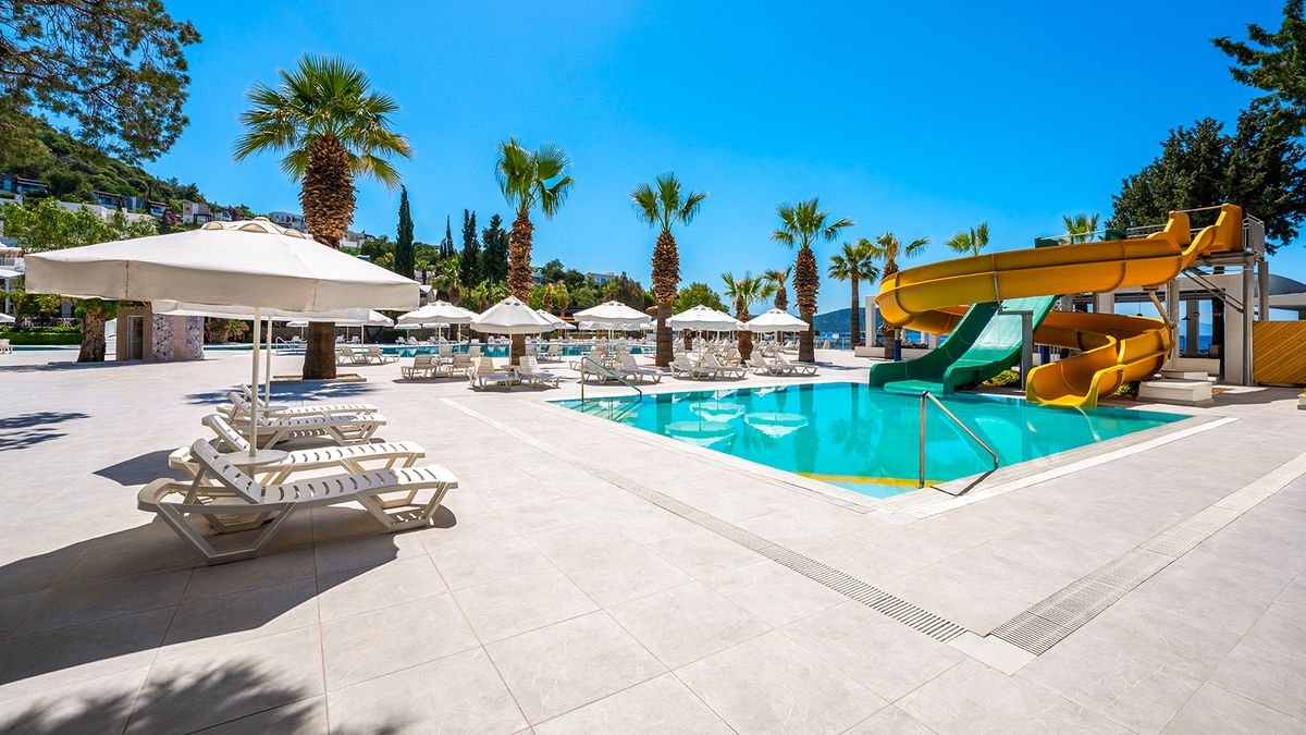 Oddaj się w objęcia pełnego relaksu w stylowym, doskonale położonym hotelu i w pełni skorzystaj z tureckiego słońca! 3 restauracje pełne zróżnicowanych dań i 5 świetnie rozmieszczonych barów zachwycą miłośników pysznej kuchni i świetnych koktajli, zadbany ogród pozwoli odpocząć w cieniu i odnowić swoją więź z naturą, a 3 baseny, w tym ze zjeżdżalniami dostarczą mocy zabawy dla całej rodziny. Bogata oferta sportowo-rekreacyjna z pewnością zadowoli pasjonatów sportu, piękna plaża tuż przy hotelu jest doskonałym miejscem na chwilę odpoczynku, czy spróbowania swoich sił w sportach wodnych, a niewielka odległość od centrum pełnego sklepów, knajpek i wakacyjnych rozrywek Bodrum nie pozwoli nawet na chwilę nudy! Po dniu pełnym wrażeń można zregenerować siły w przestronnych, funkcjonalnie urządzonych pokojach.
