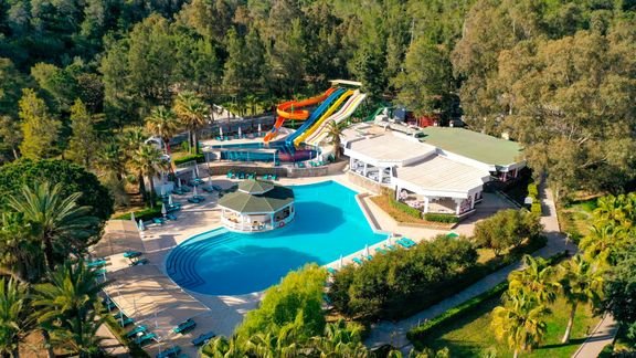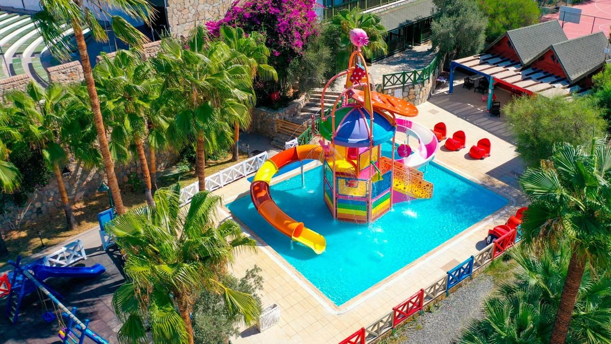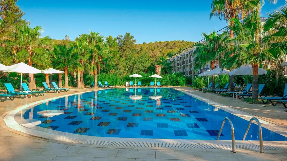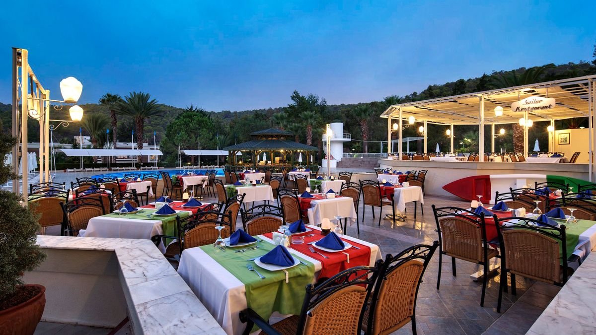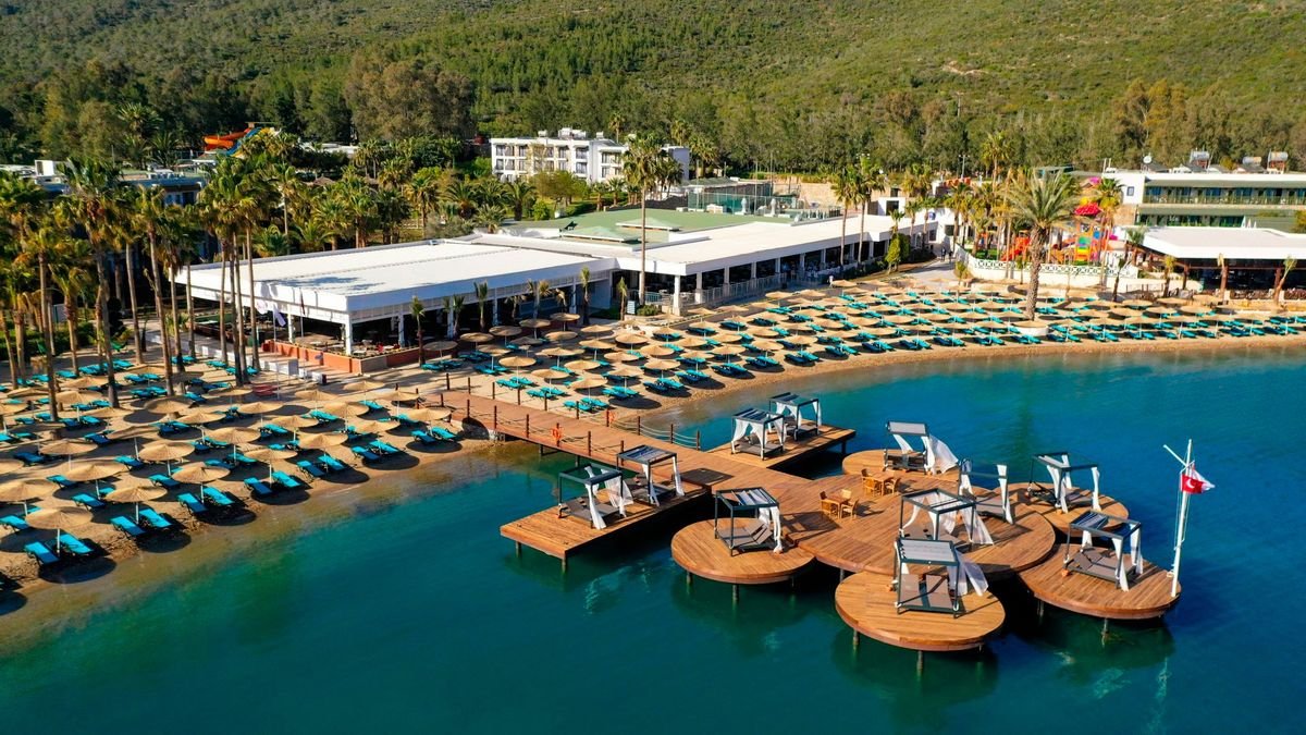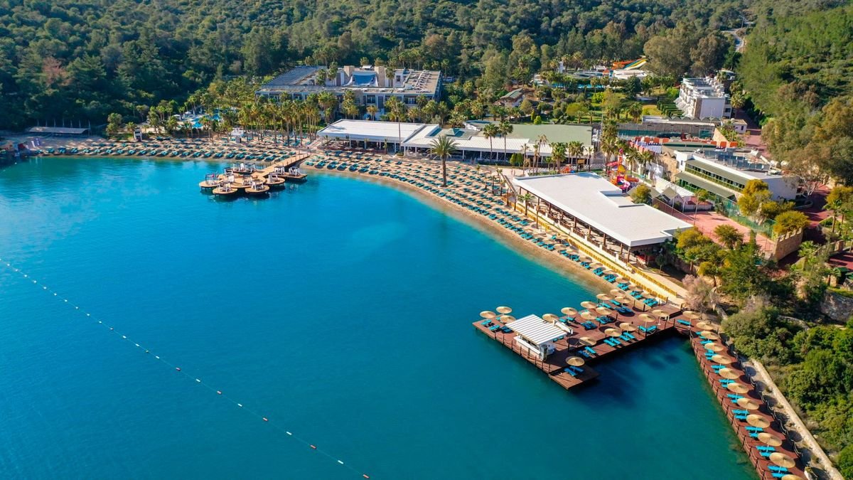 To prawdziwa, wakacyjna oaza! Hotel położony w cudownej zatoce, na rozległym terenie, wśród drzew sosnowych, tuż przy plaży i morzu, to wymarzona sceneria na urlop z rodziną. Na plaży oprócz serwisu piękny, prywatny pomost z barem – idealne miejsce na relaks i podziwianie zachwycających widoków. Na miejscu mnóstwo rozrywek dla Gości w każdym wieku! Baseny, zjeżdżalnie, zajęcia w miniklubie, animacje, szeroka oferta sportowa i wiele, wiele więcej. Szeroki wybór restauracji tematycznych i barów, bogata oferta ultra all inclusive i świetny serwis – hotel zasługuje na każdą swoją gwiazdkę. Odpoczywaj, baw się i zaplanuj dzień na zwiedzanie pełnego turystycznych atrakcji, słynnego Bodrum.