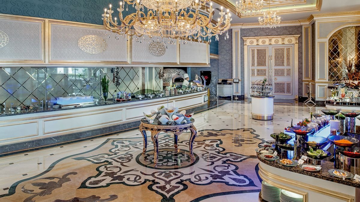 śniadanie (7.00-11.00), obiad (12.30-14.30), kolacja (19.00-22.00), przekąski (24.00-1.00) w formie bufetu w restauracji głównej; podwieczorek (10.00-22.00) w cukierni; przekąski (12.00-18.00) w restuaracji z przekąskami; całodobowo napoje bezalkoholowe oraz lokalne i wybrane importowane napoje alkoholowe w barze w lobby; wymagane noszenie opasek all inclusive.