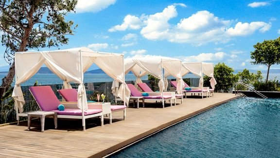 pięciogwiazdkowy, zbudowany w 2014 r., 335 pokoi, budynek główny (4 piętra, 2 windy), budynki poboczne i 56 willi, przestronne lobby, całodobowa recepcja, restauracja główna The Stage – dania w formie bufetu, dostępne foteliki i menu dla dzieci, 3 restauracje z przekąskami: Sea Deck – dostępne foteliki dla dzieci, Veranda, Malibu Deck, 5 restauracji à la carte (wymagana wcześniejsza rezerwacja): kuchnia śródziemnomorska i turecka, kuchnia azjatycka, owoce morza, kuchnia włoska, kuchnia japońska, 6 barów, w tym na plaży i przy basenie, kącik z shishą (dodatkowo płatny), cukiernia; sklep z cygarami, market, sklepy z pamiątkami, sala konferencyjna dla maks. 150 osób, taras, ogród, bezpłatny internet bezprzewodowy; za opłatą: room-service, lekarz na wezwanie, fryzjer, pralnia, fotograf; akceptowane karty kredytowe: Visa, MasterCard.