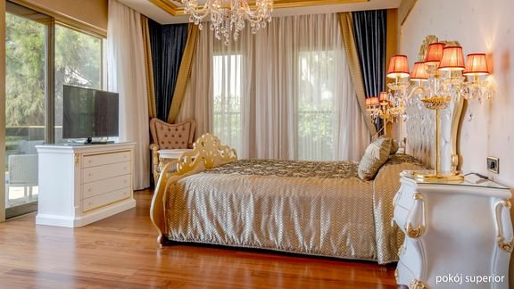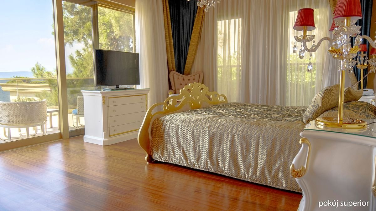 superior: 2-os. (możliwość 1 dostawki dla dziecka), ok. 40 m2, klimatyzowany, łazienka (wanna lub prysznic, wc; suszarka, szlafrok, kapcie), telewizja satelitarna, telefon, minibar (uzupełniany w napoje bezalkoholowe i piwo), zestaw do kawy/herbaty, sejf; bezpłatne łóżeczko dla dziecka do 2 lat na zamówienie przed przyjazdem; balkon (stolik i krzesełka), widok na morze.